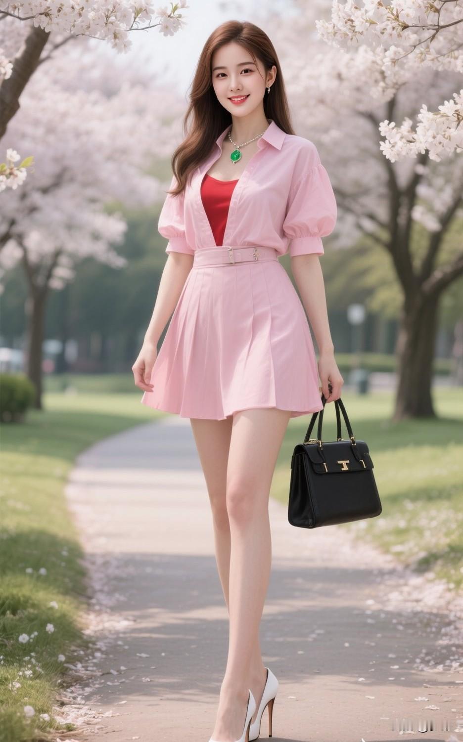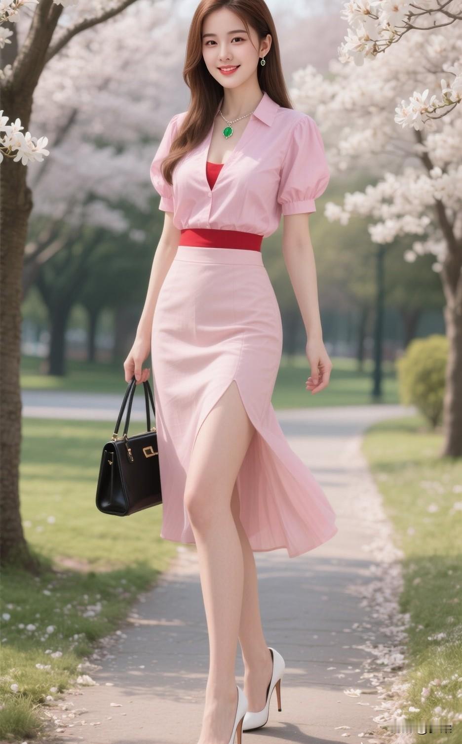 春日穿搭指南:粉色连衣裙+白色高跟鞋,清新自然,元气满满!🌸👗👠