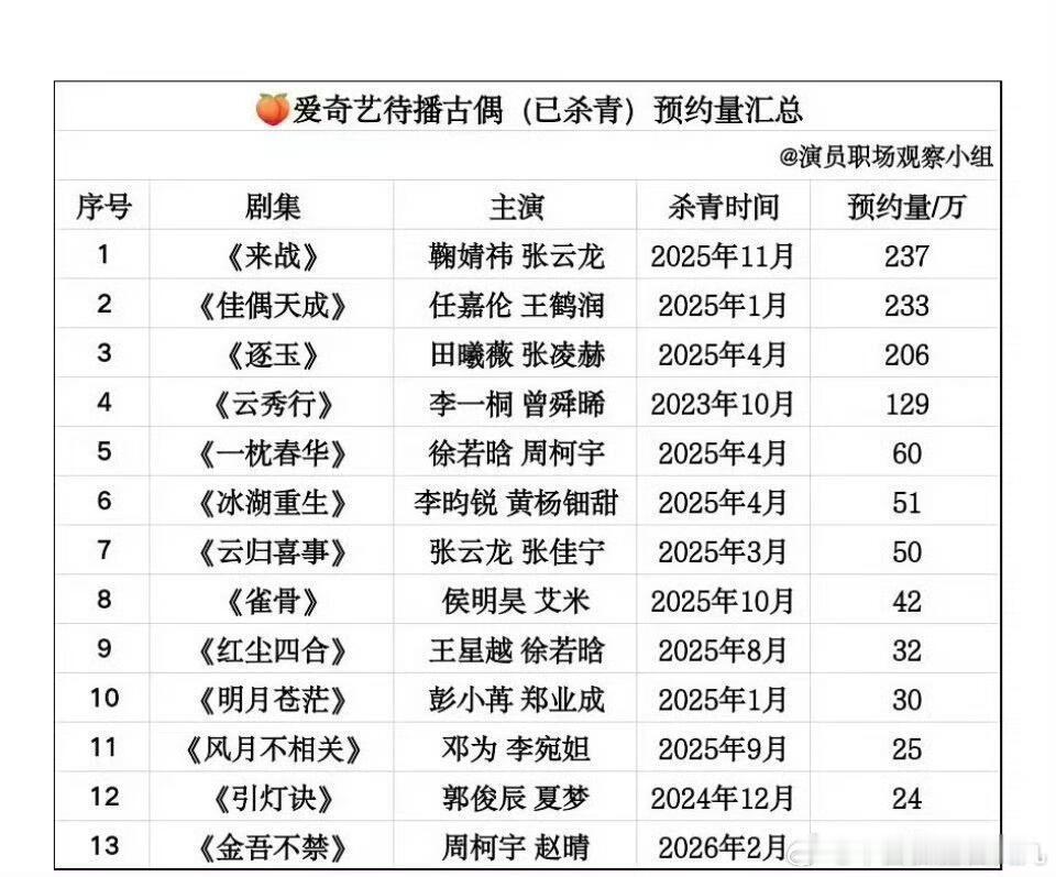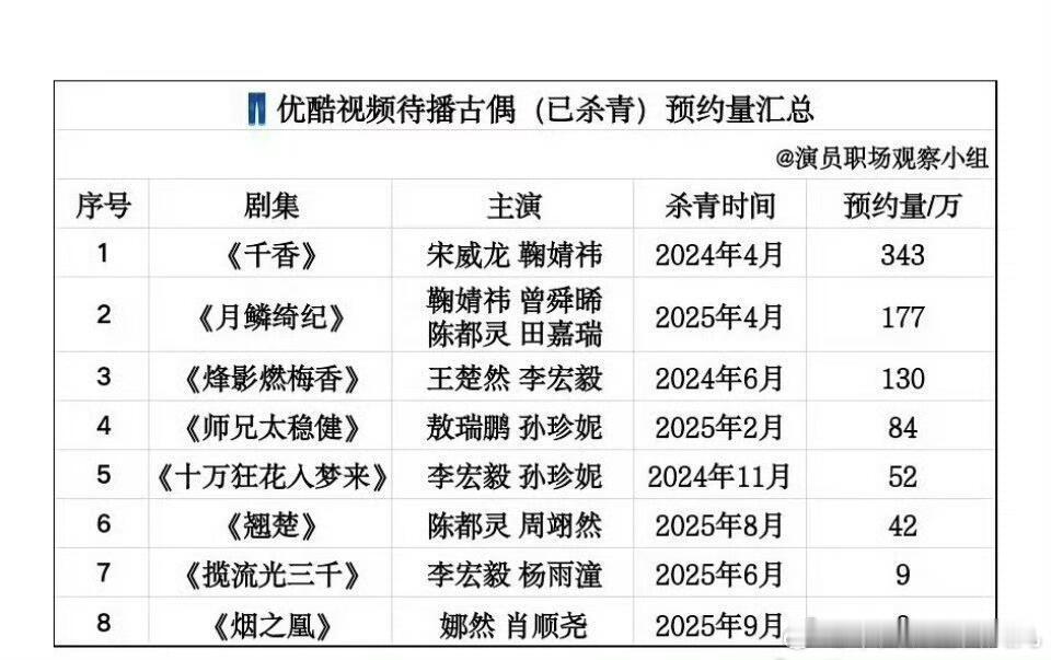 优酷、爱奇艺、腾讯三大平台待播剧预约量排