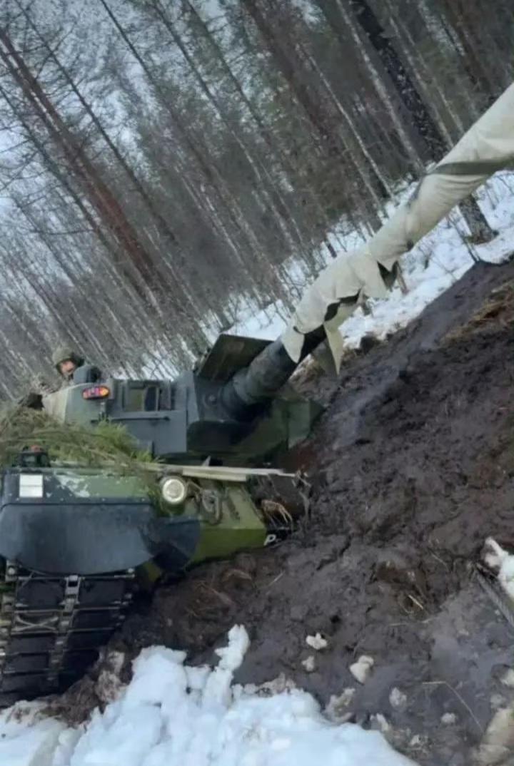 芬兰豹2A4坦克陷入冬季泥沼地,坦克车体几乎被泥浆淹没,动弹不得。 乌克兰春季融雪期形成季节性泥沼地(俗称“拉斯普季察季”),重型坦克履带易下陷。类似情况在2023年6月乌军反攻期间已多次发生,例如扎波罗热方向的豹2A4因泥泞弃车。