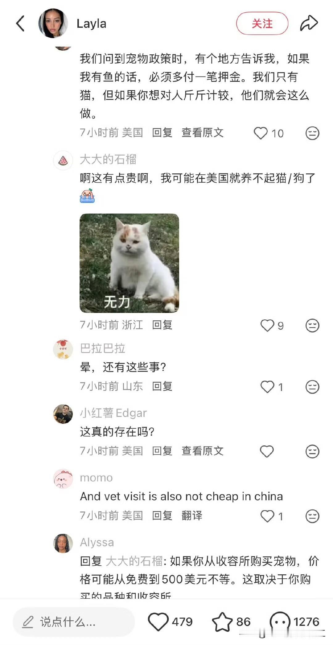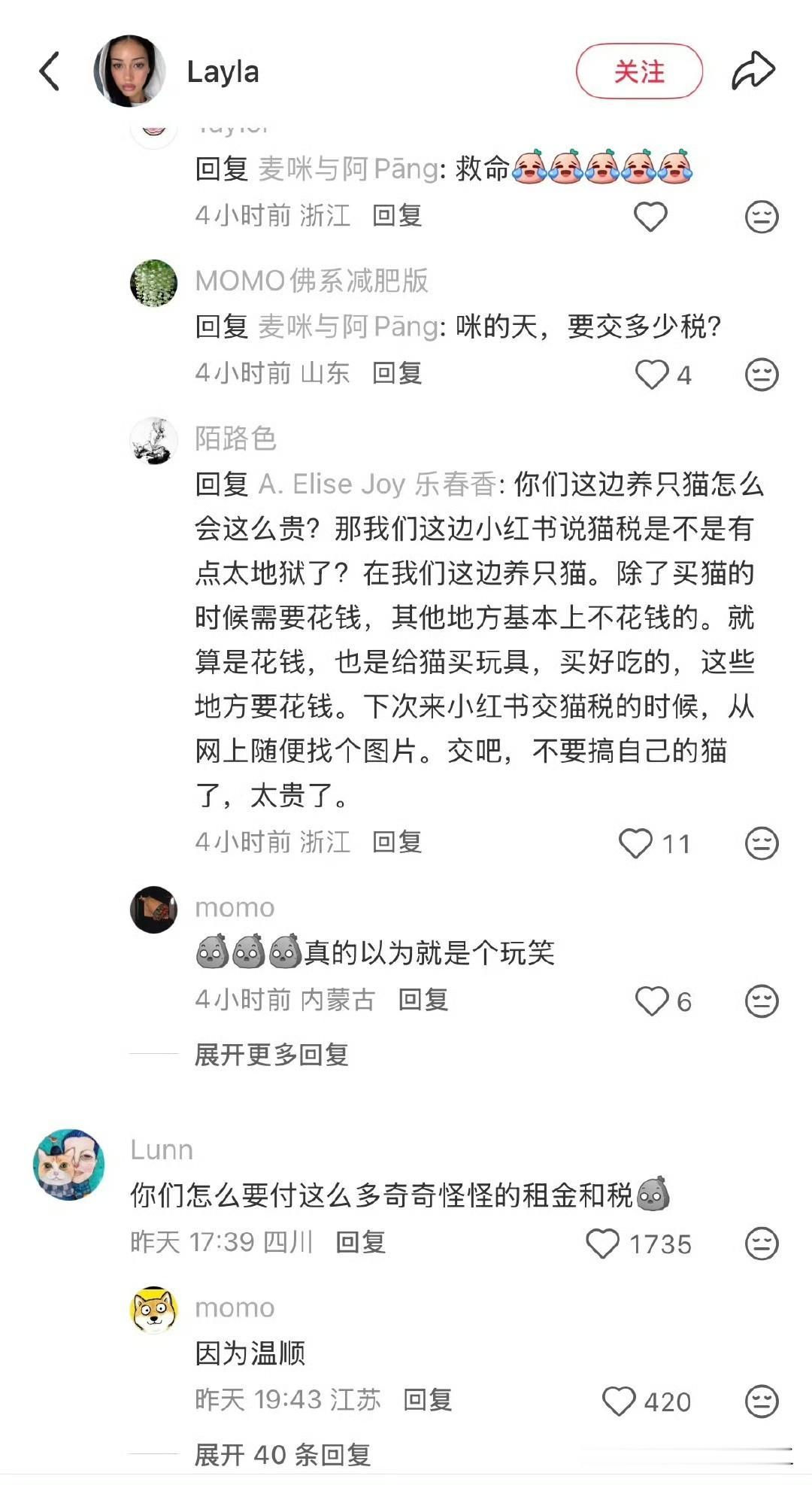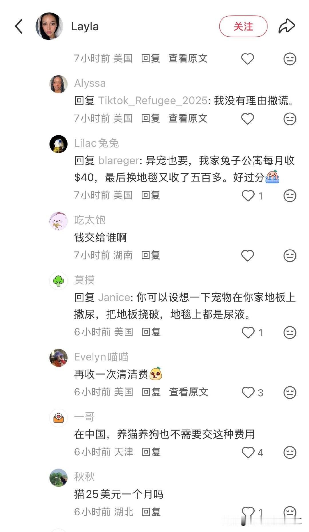 美国网民在小红薯上问,在中国养宠物的公寓住户需要交宠物租金吗? 网友回复,所以去年年初小红薯上说的猫猫税,我们只是在搞抽象,而你们是真的需要在现实生活中交?