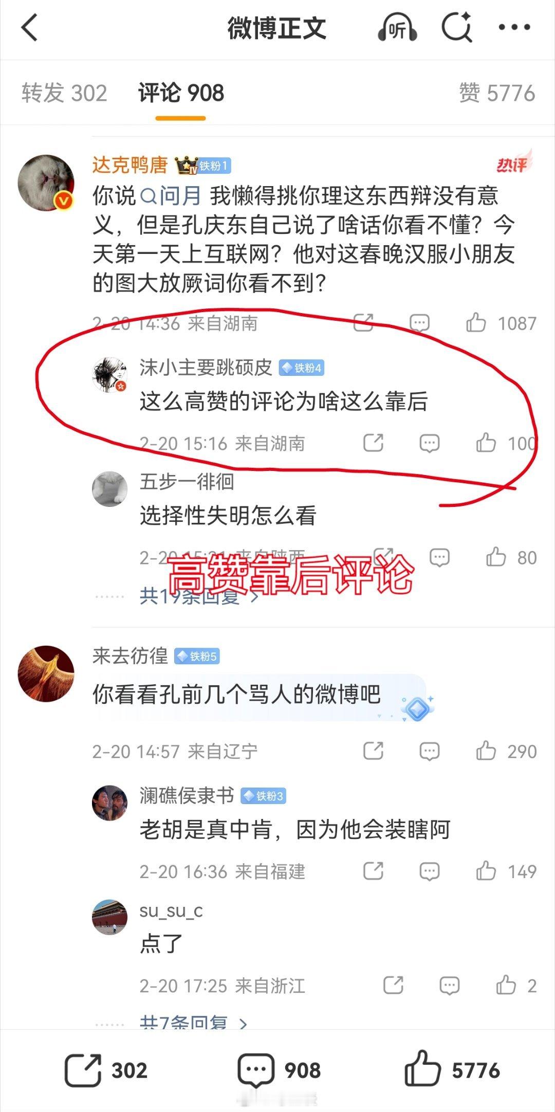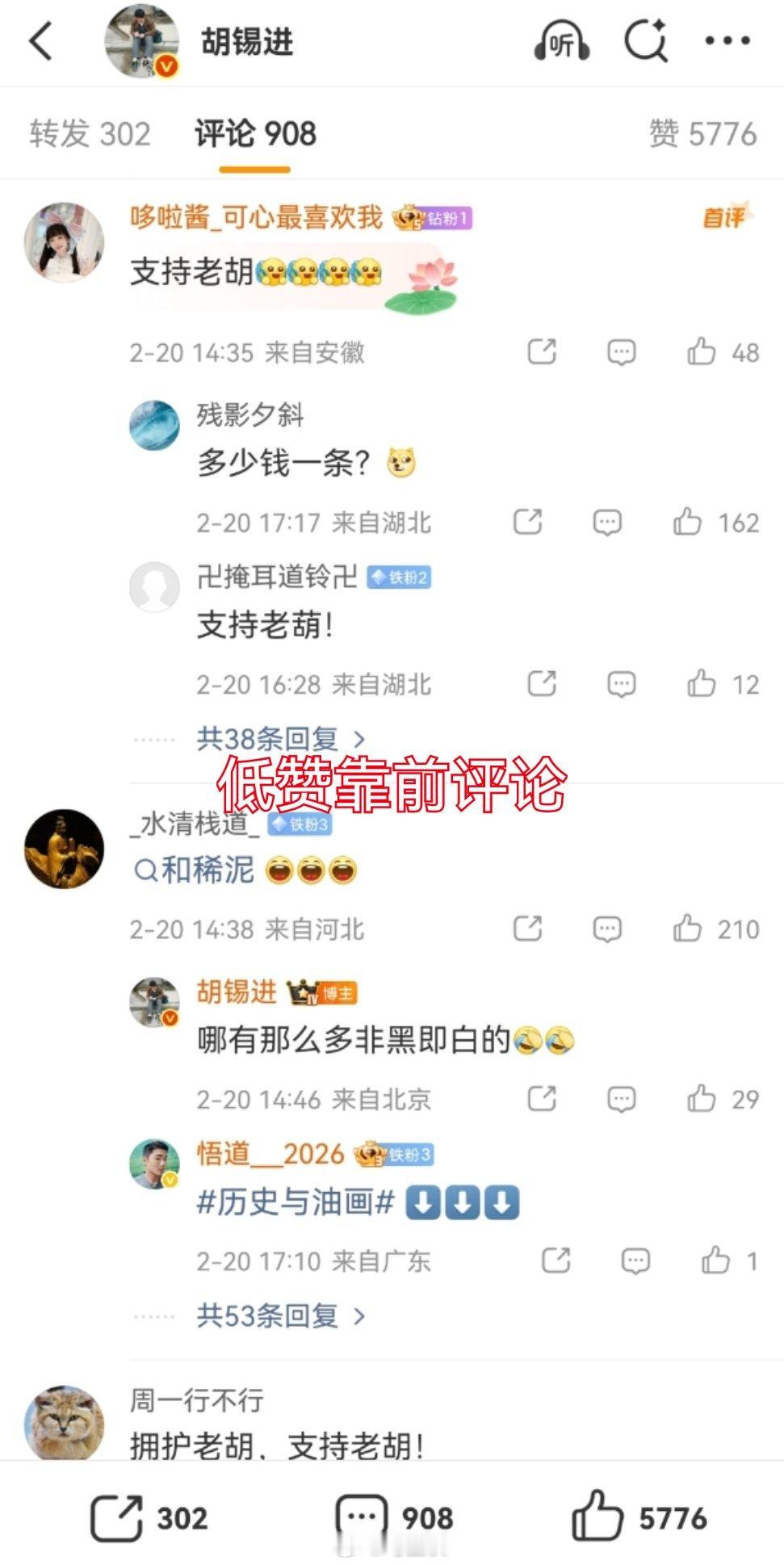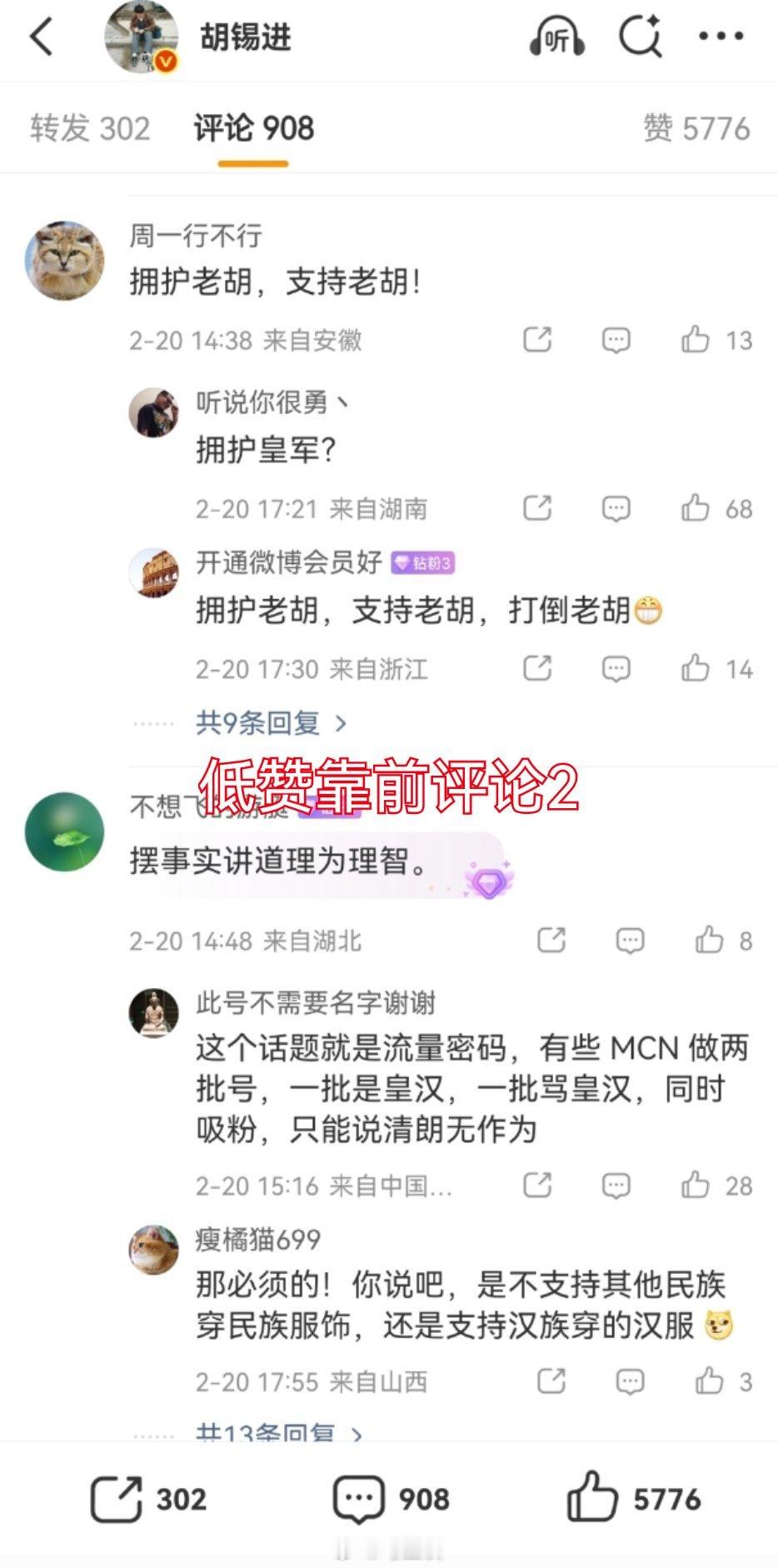 胡锡进谈河南春晚汉服争议老胡,网友问你,高赞评论为什么那么靠后?为啥你不敢直面