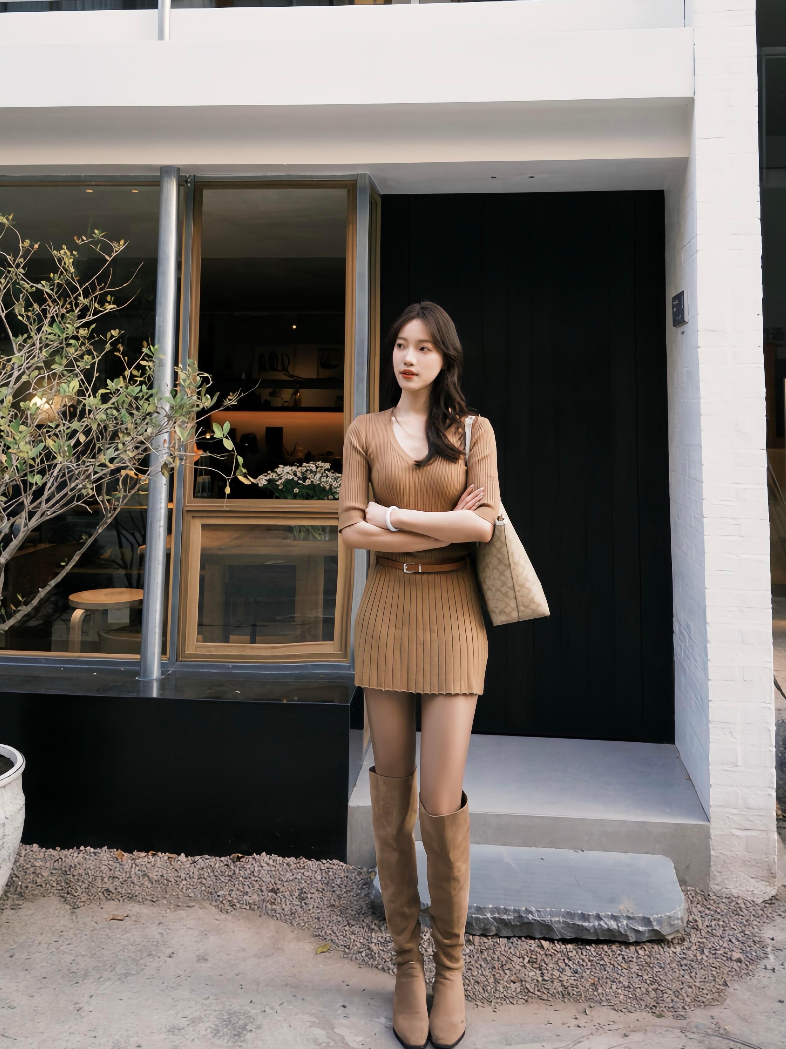 中袖连衣裙穿搭思路~