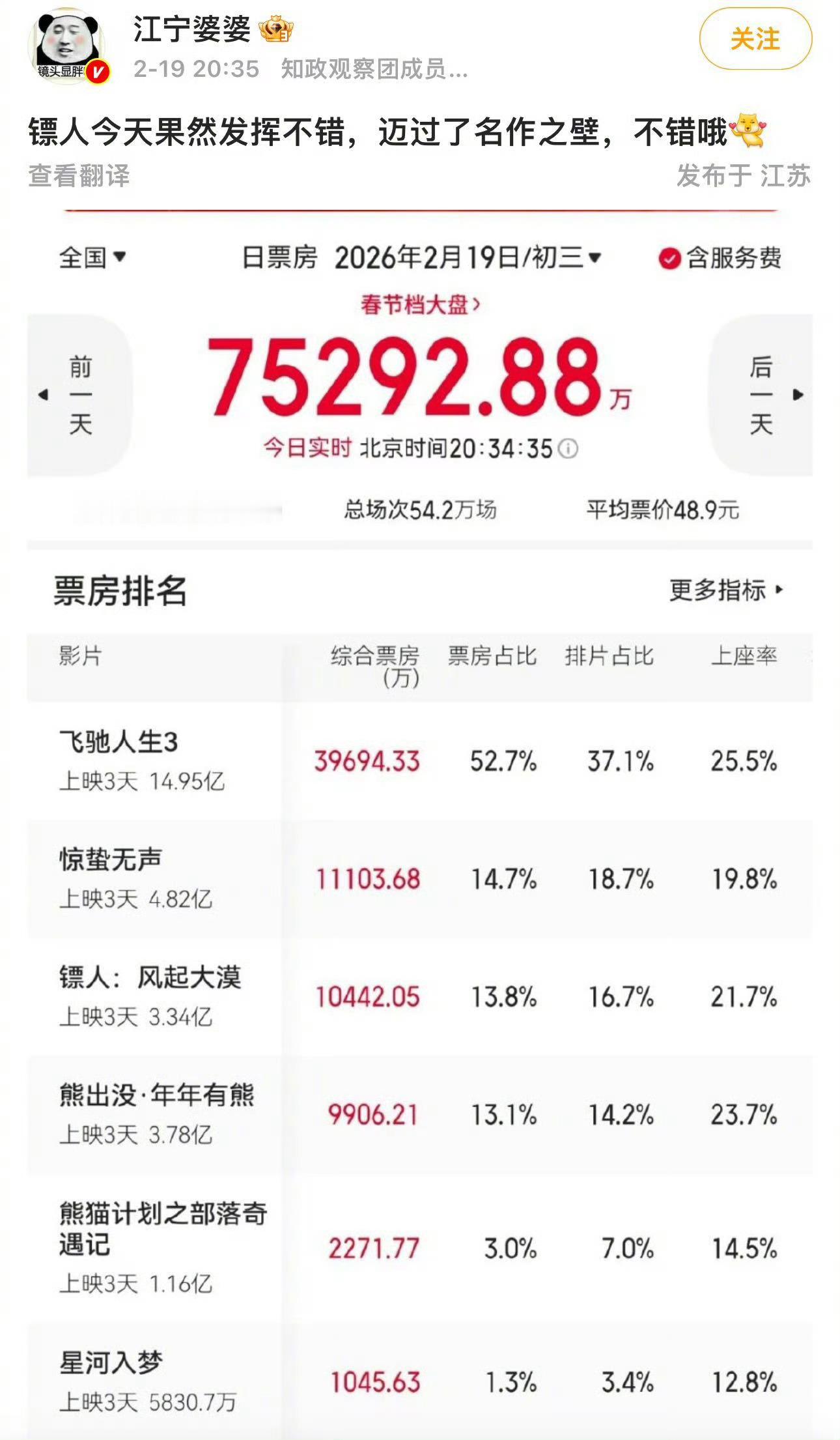 镖人争气 朋友提聚餐八卦?我满脑子“《镖人》太争气”!票房逆跌反超,郫县7.5分稳坐口碑第二,排片回升、预测窜涨,从开局不被看好到靠实力圈粉,二刷预定~