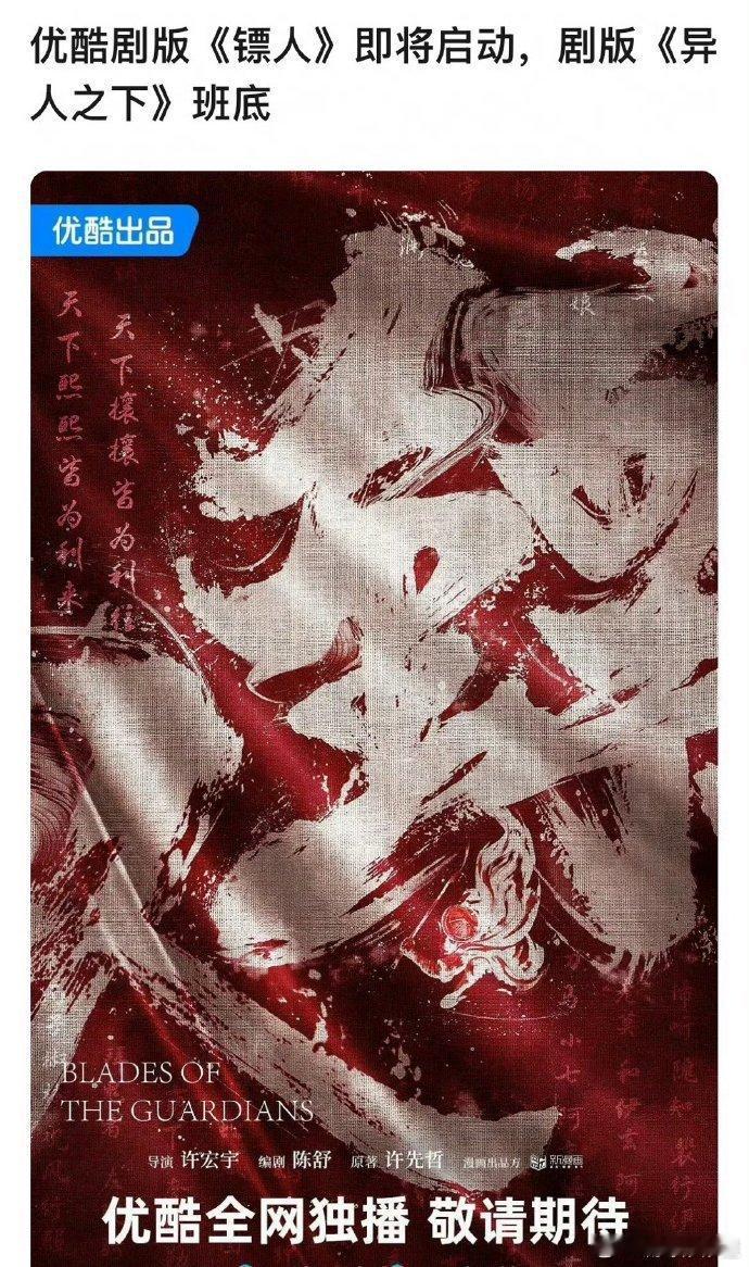 剧版镖人已经立项,电影镖人口碑挺好的,剧版也希望能跟上质感