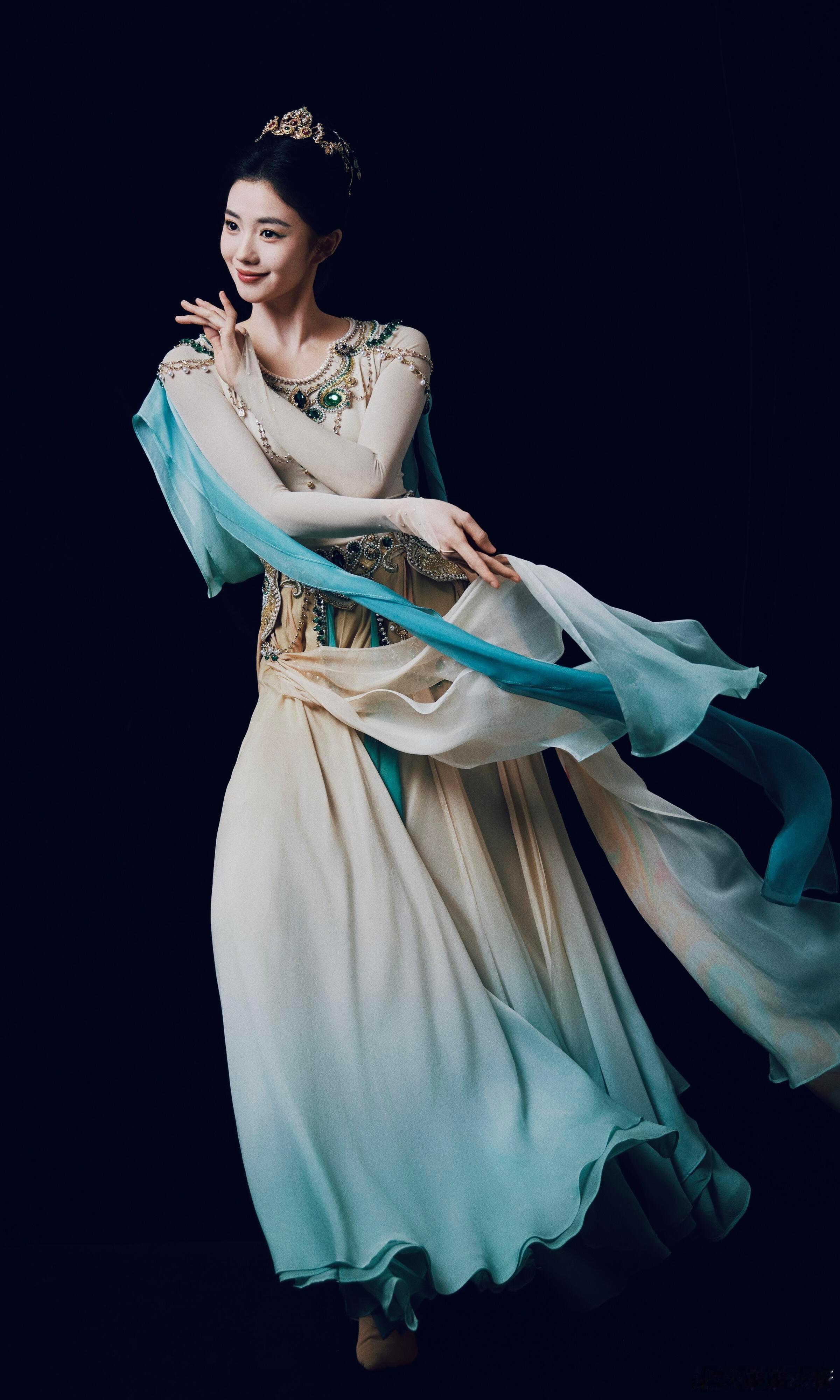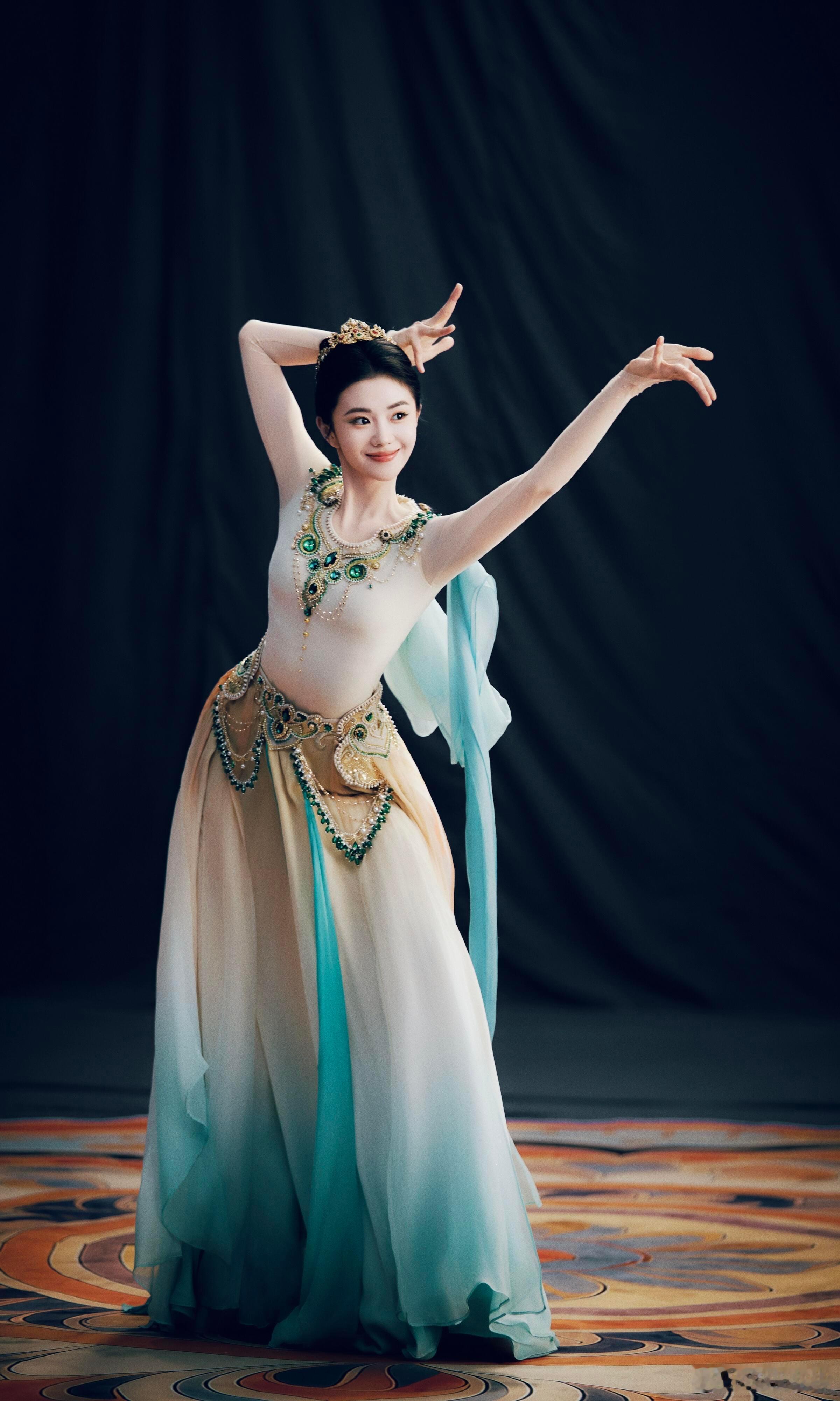 刘浩存化身壁画上的飞天神女,这组大片也确实拍得太美了!