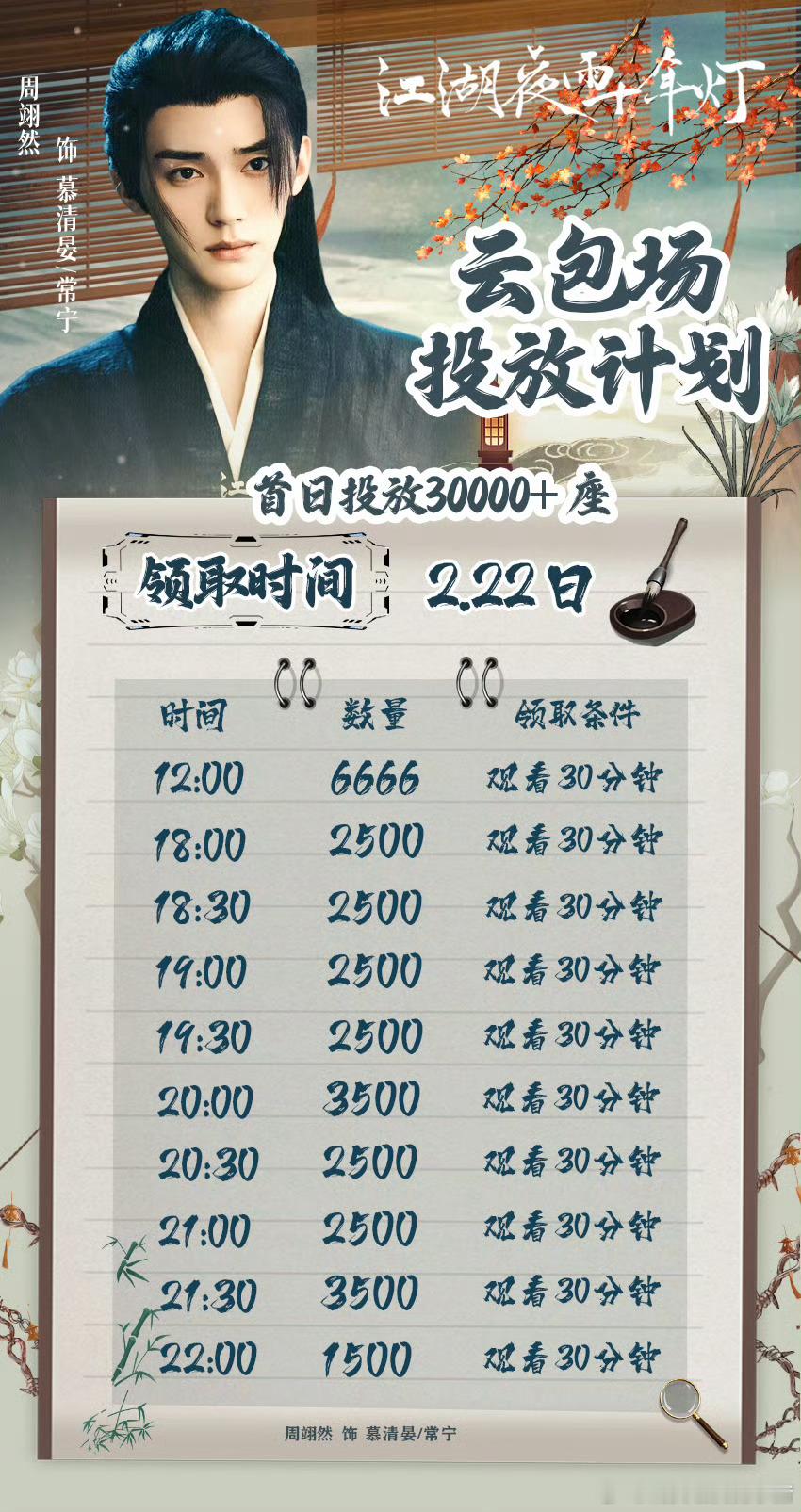 周翊然粉丝云包场00生第一,43000+座,全力托举这个慕清晏