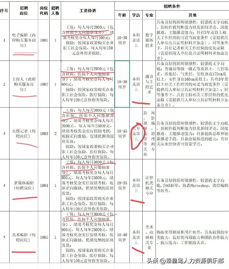 某地招聘(政府购买服务岗位和特聘岗位)电子编辑、主持人、全媒记者这些岗,工资写着2000-3000,重点来了——这还是“包含社保公积金个人部分”的价!意思就是到手可能更少…… 更绝的是,除了一个岗大专能报,其他全要本科,年龄还卡在18-30岁居多。这条件,这待遇,我直接疑惑:现在端盘子跑堂的工资都不止这个数了吧?[笑哭] 真就应了那句“人口红利”,合着咱们打工人的时间、学历、技能,在某些单位眼里就值这个价?一边要你会写稿、出镜、做设计,一边连社保都从工资里扣,还得年轻、有经验、专业对口…… 咱不是说服务员不好,凭劳动挣钱都该有应有的待遇。可这招聘,明明要的是“人才”,给的是“人力”价,还要挑三拣四年龄学历,这不是搞笑吗?[看] 难怪都说现在职场魔幻,这哪是招人,这是许愿吧!