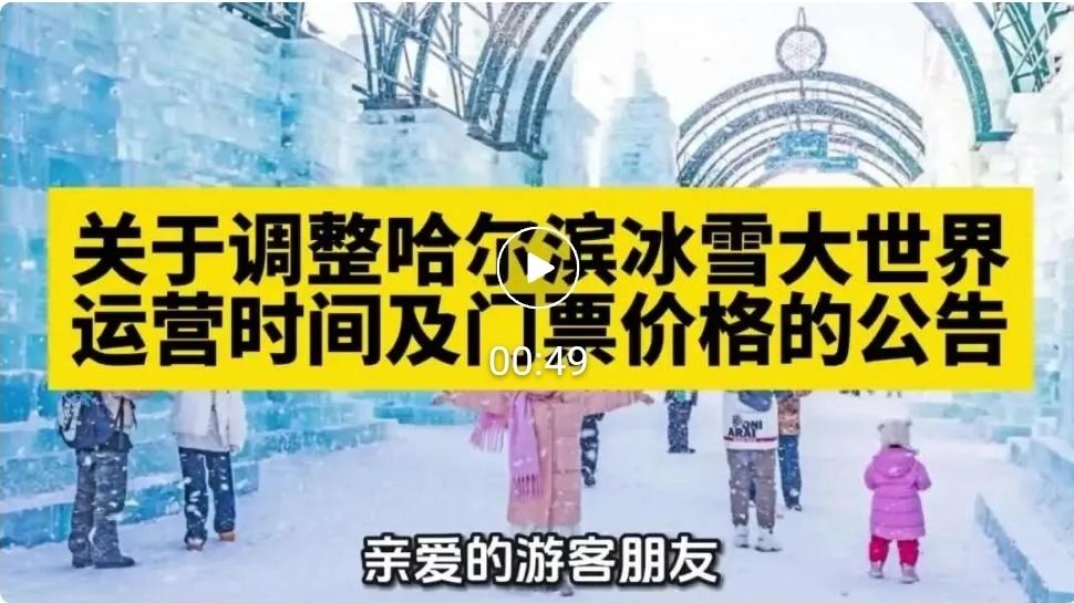 哈尔滨冰雪大世界公告:运营时间及门票价格调整