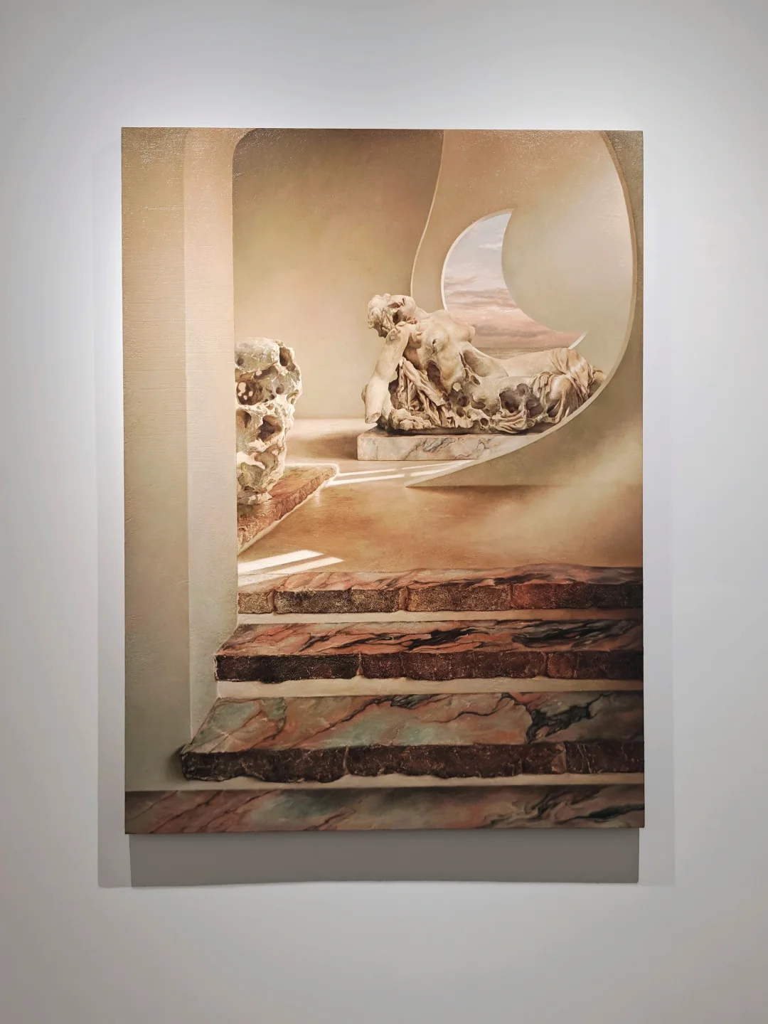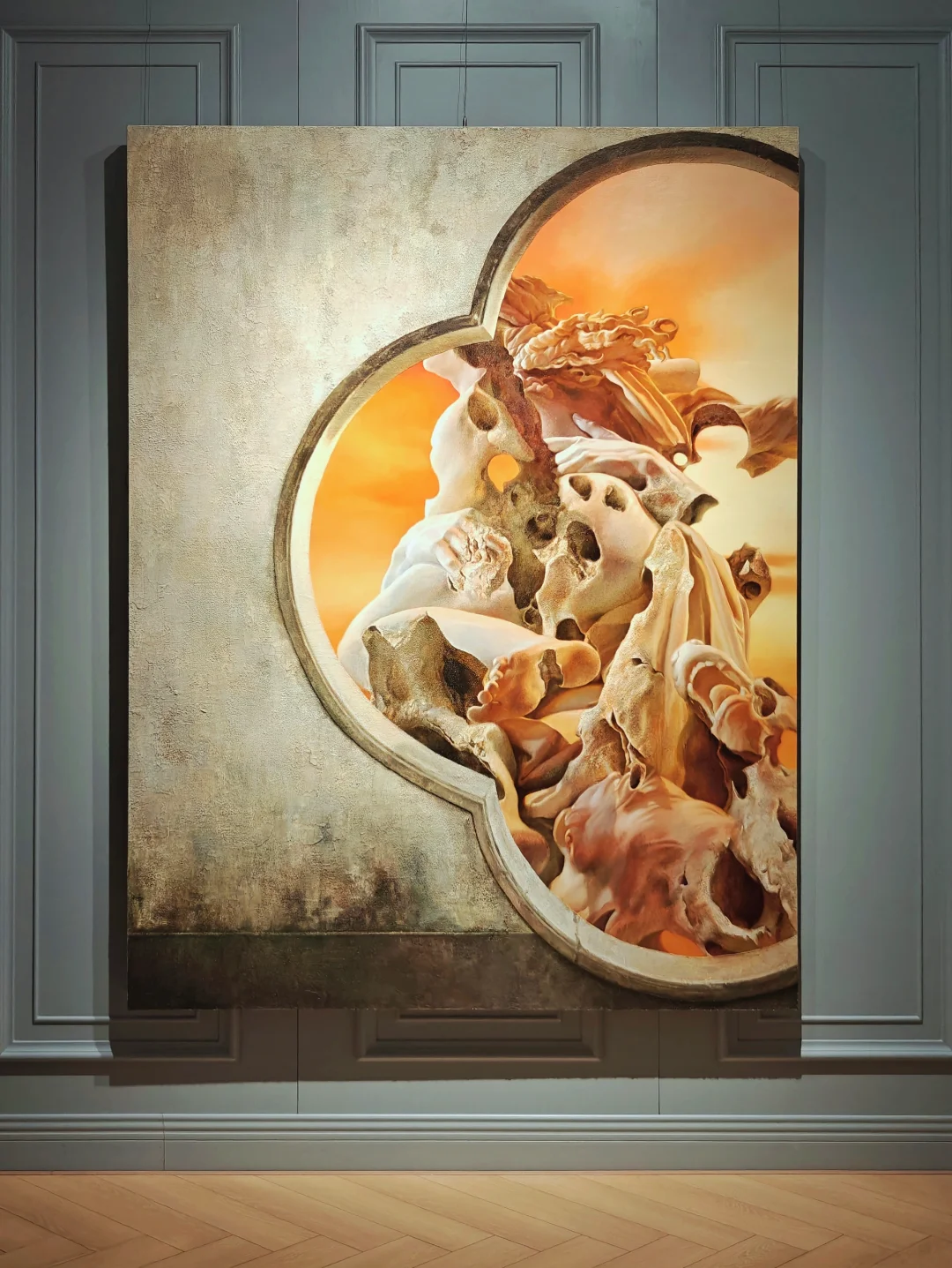 艺术家成长于全球化浪潮与本土意识觉醒交织的年代,他希望在对立中缓和文化冲突。他的“洞喻”系列作品,通过东方园林窗洞的形式窥见西方古典艺术,让窗洞不再只是东方美学的符号,而成为跨越文明维度的视觉叙事。