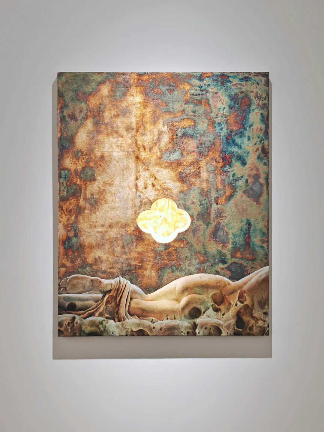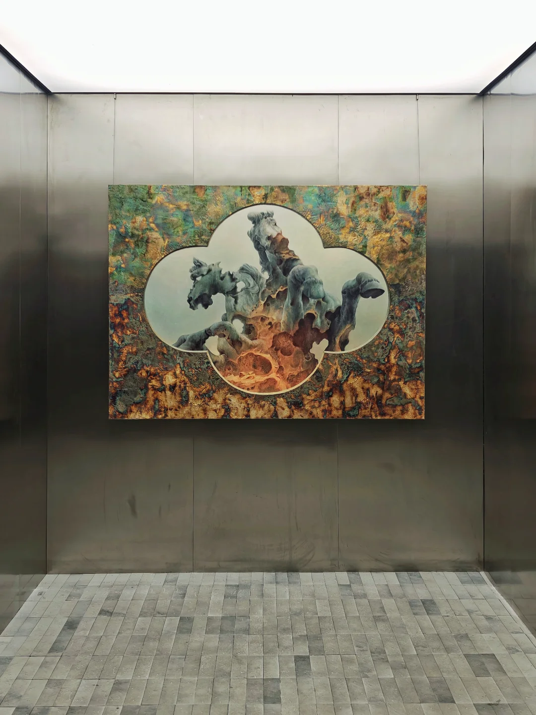 在《泰坦》《窗前的海尔玛弗狄忒》等作品中,他将西方古典雕塑置于“似真非真”的园林场景,并用不符合物理逻辑的光源营造神秘静谧的氛围。这种方式既受游戏与科幻影像影响,也呼应了西方宗教建筑通过光线营造“神性体验”的传统,让观者在不断切换位置中重新思考文化的重叠与断层。