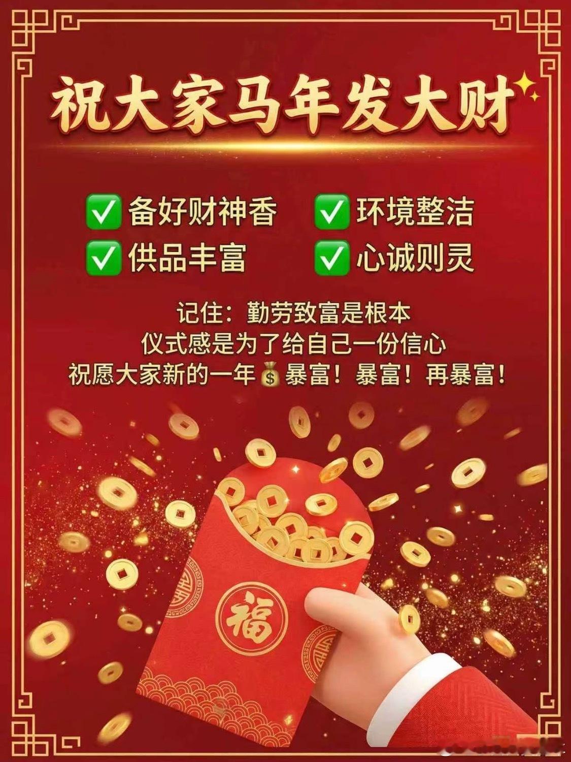 迎财神现在就可以开始迎财神啦!总之一句话,初五一定保持好心情!不要吵架,赶走穷气,多说吉祥话2026💰💰💰你必发大财!!