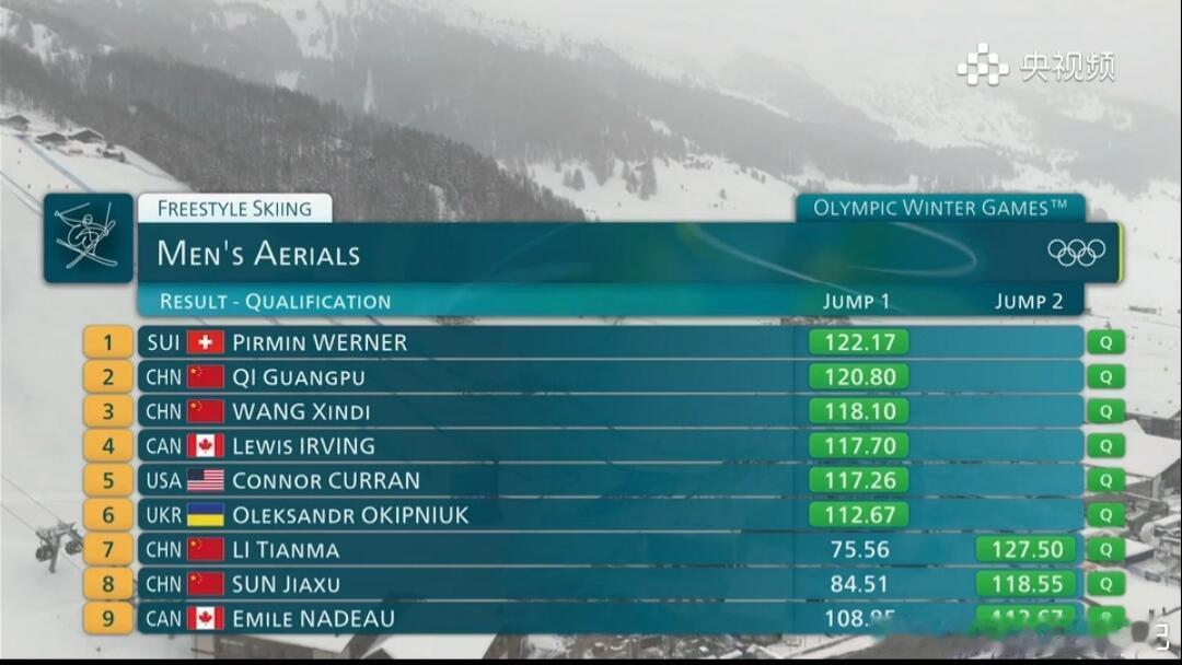 中国空中技巧男团全员进决赛刚刚自由式滑雪 男子空中技巧比赛中,中国4名运动员全员晋级半决赛!中国小伙子们加油!赛出自己的最好水平!