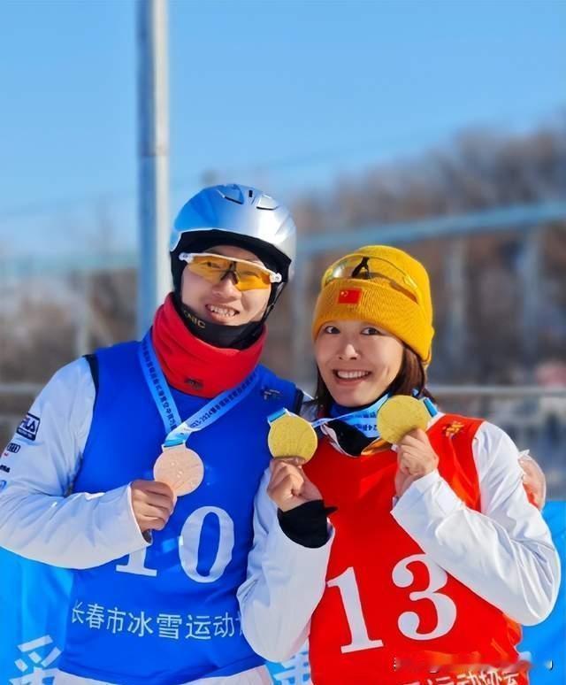 俗语“女大三、抱金砖”,徐梦桃与王心迪两口子是“女大五,抱着金牌走”。这一对夫妻被粉丝称为“桃心夫妇”,在2026年米兰冬奥会上,两人先后夺得金牌,成为冬奥历史上首对同时获得金牌的夫妻。 真是太让人羡慕啦,古语有云: “夫妻同心,其利断金”,徐梦桃与王心迪同属于自由式滑雪空中技巧国家队队员,两人一同训练,一同出征。最终,夫妻二人同届同项目双双登顶,成就了冬奥史上首对“个人项目双金夫妻”的传奇。从并肩作战的队友,到顶峰相见的爱人,估计不会有比这更极致的浪漫了。 突然想起了《雪山飞狐》里那句动人的“唯有与你同行,才能把梦追寻”。这世间最极致的浪漫,莫过于与你并肩,从青丝走到白发,从训练场走到领奖台。希望“桃心夫妇”继续长路漫漫,踏歌而行! 特地从网上搜集了几副照片,看了又看,激动羡慕的不行,不知屏幕前的友友们是不是也羡慕到了?哈哈!