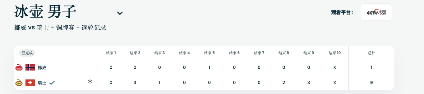 🥌米兰冬奥会男子冰壶铜牌赛🥉瑞士🇨🇭vs挪威🇳🇴,瑞士以9比1战胜挪威,摘得本届冬奥会男子冰壶项目铜牌🥉