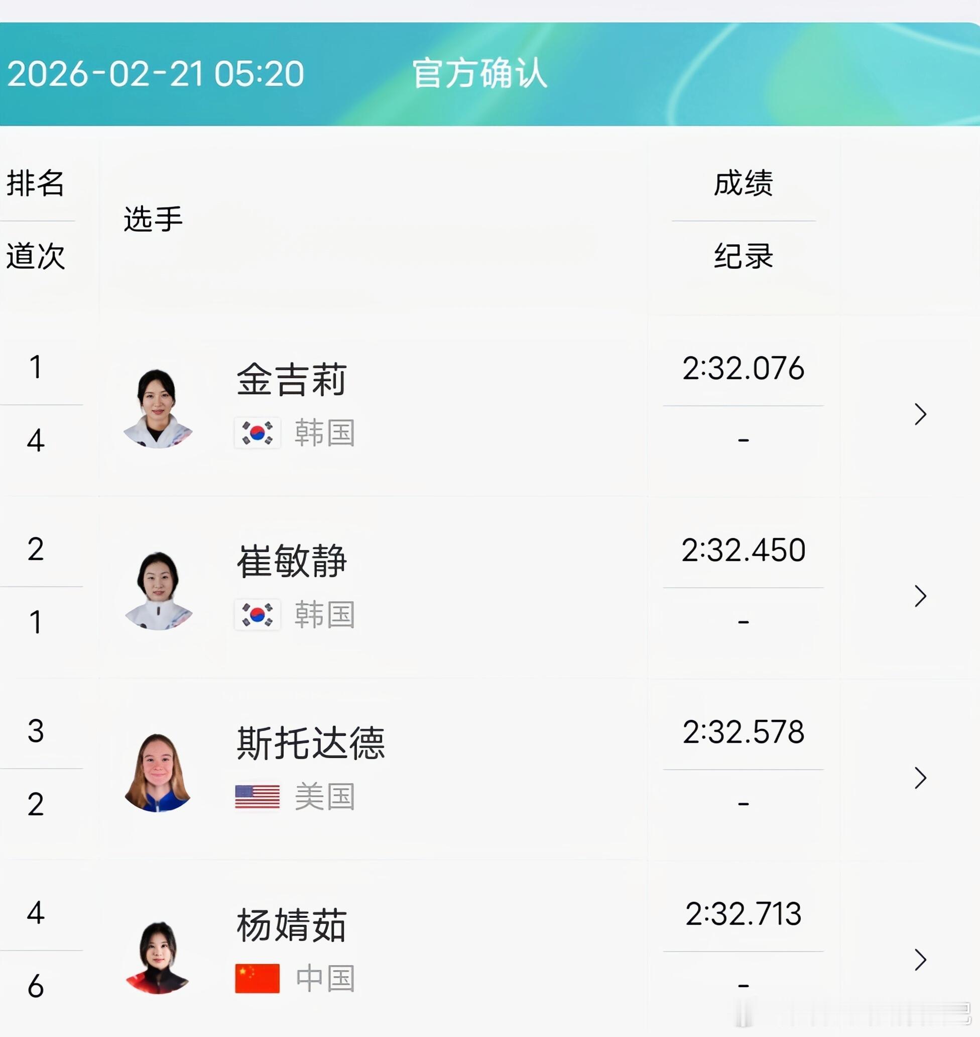 杨婧茹半决赛小组第一当别人一一摔倒杨婧茹稳住了!决赛杨静茹加油!好运常在!