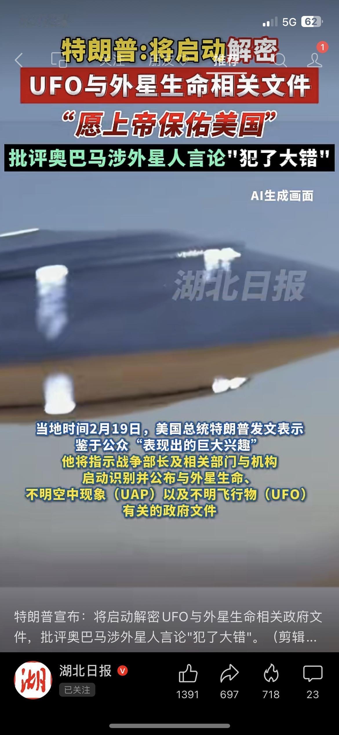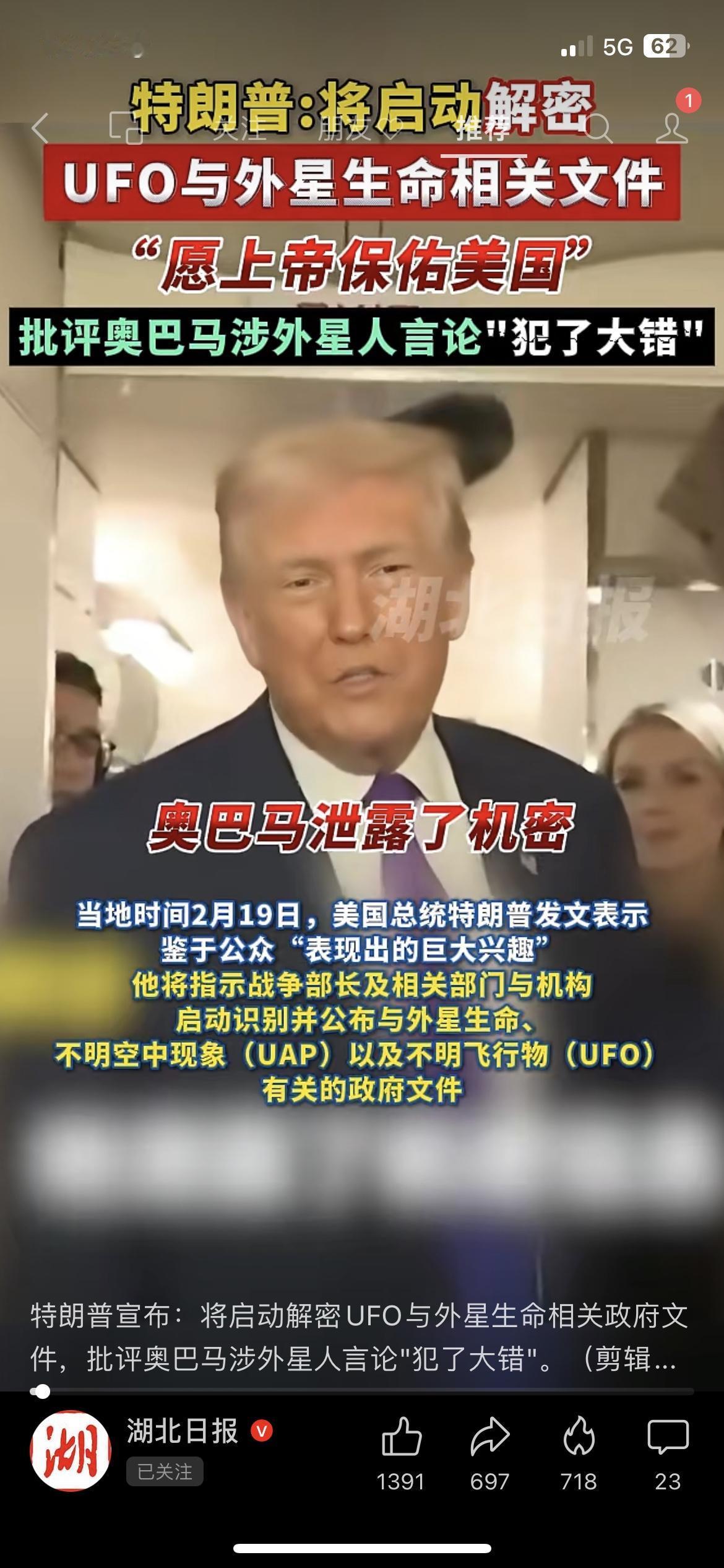 特朗普宣布:将解密UFO与外星生命相关文件,还公开批评奥巴马涉外星人言论泄露机密。 消息一出,全网炸锅,各种猜测满天飞。 咱就当个热闹看,开心就行。 比起外星生命,还是先把自己的小日子过明白更实在。 UFO 外星人 热点吃瓜欧洲对特朗普 聊特朗普