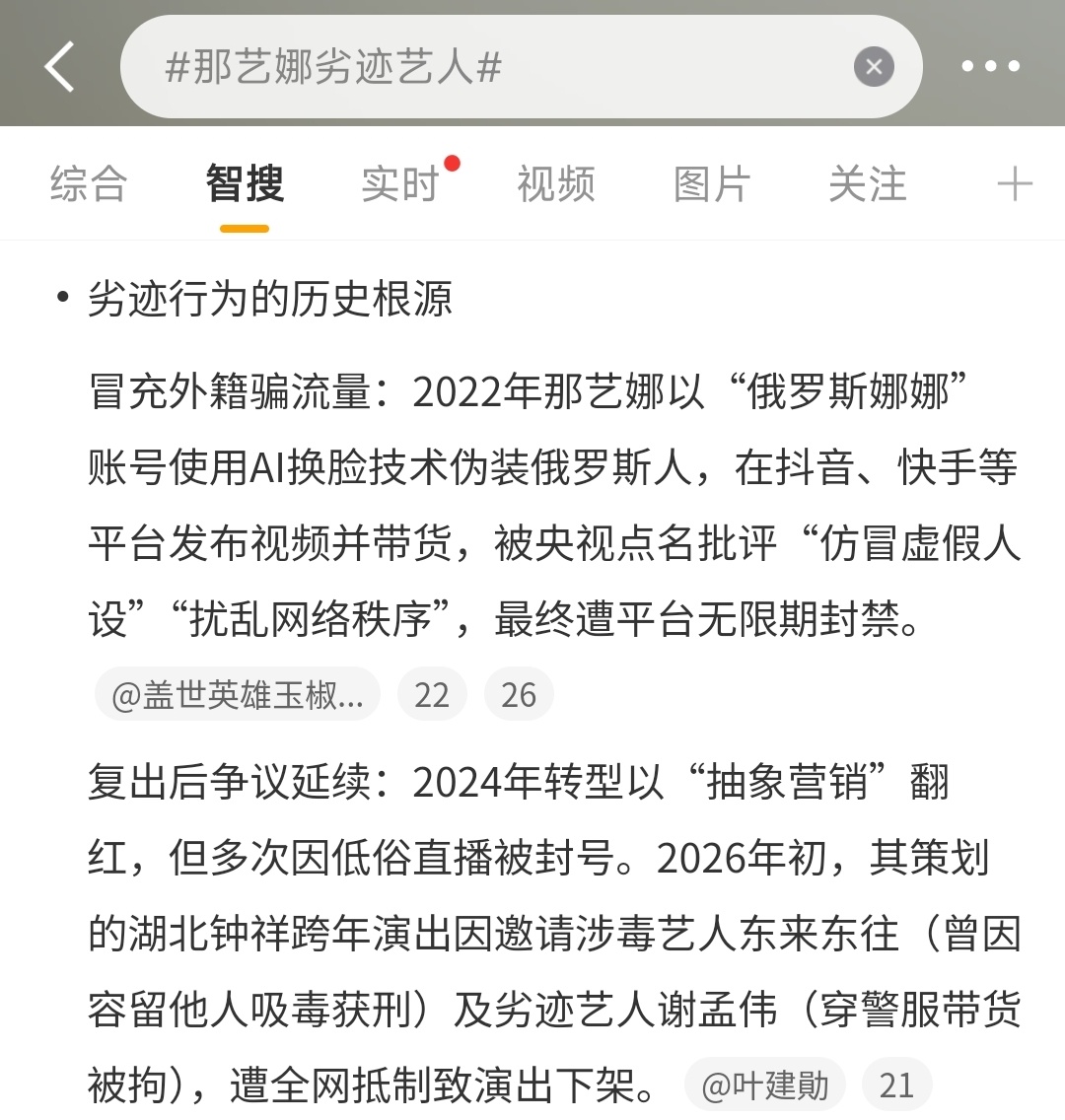 那艺娜劣迹艺人智搜告诉我,她被定为劣迹艺人的根源。