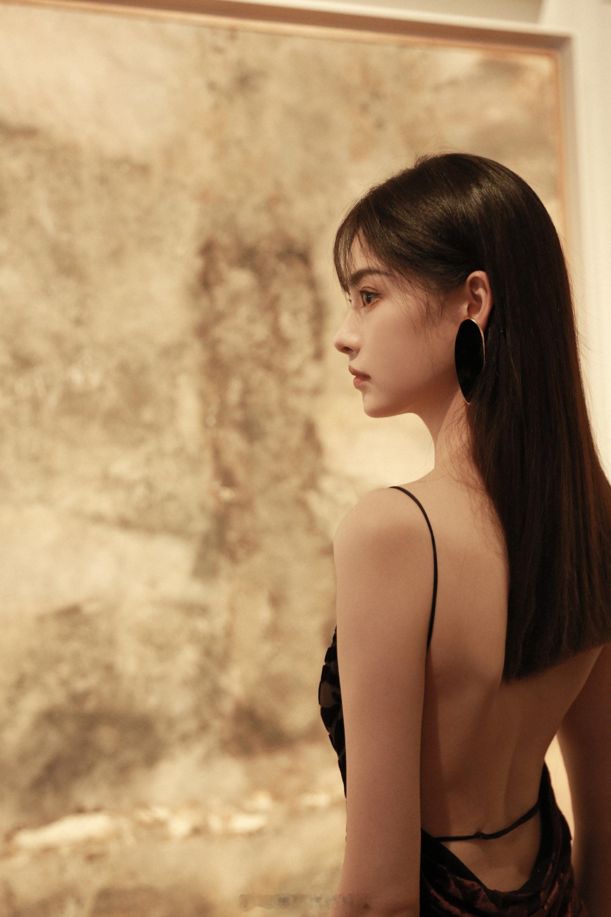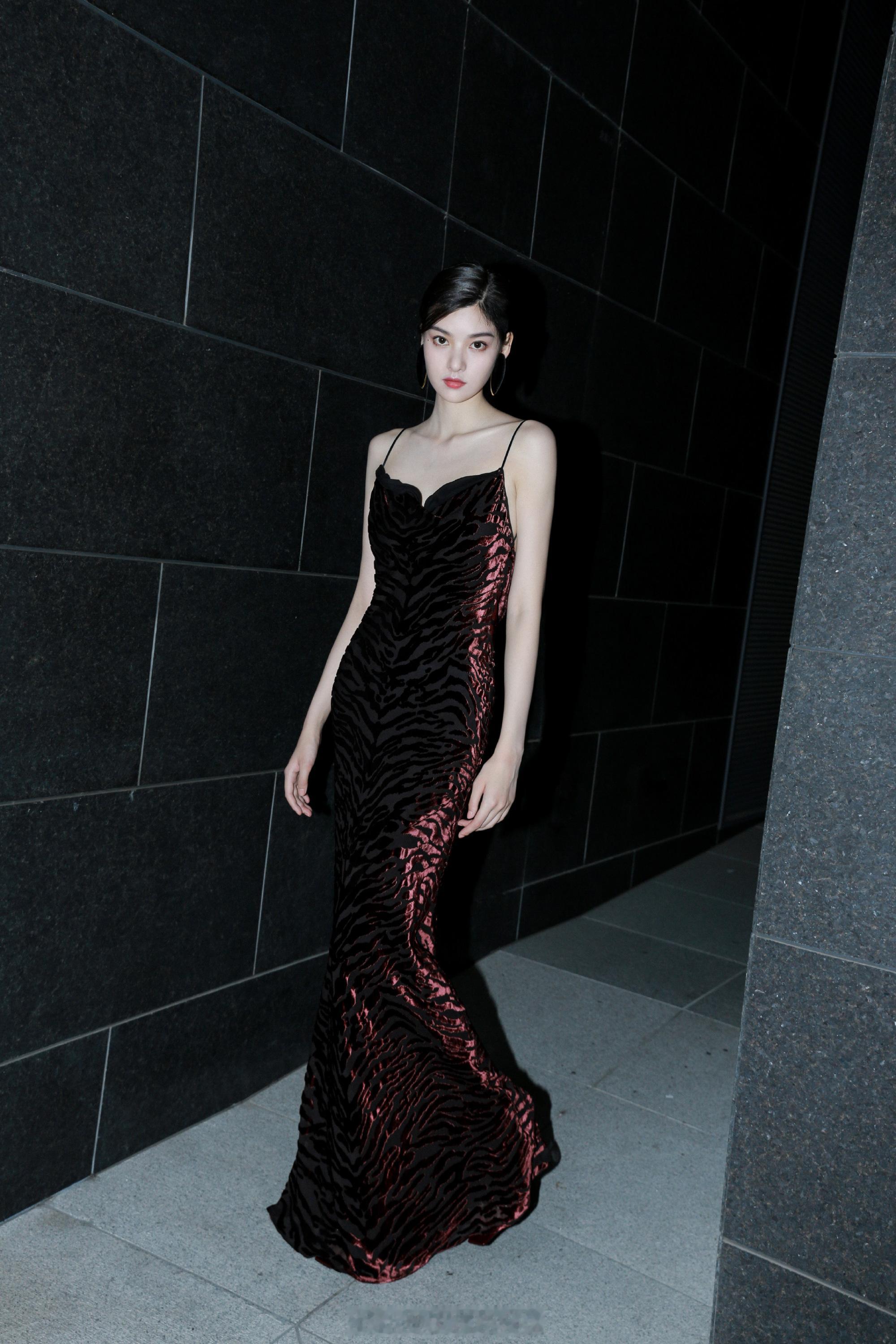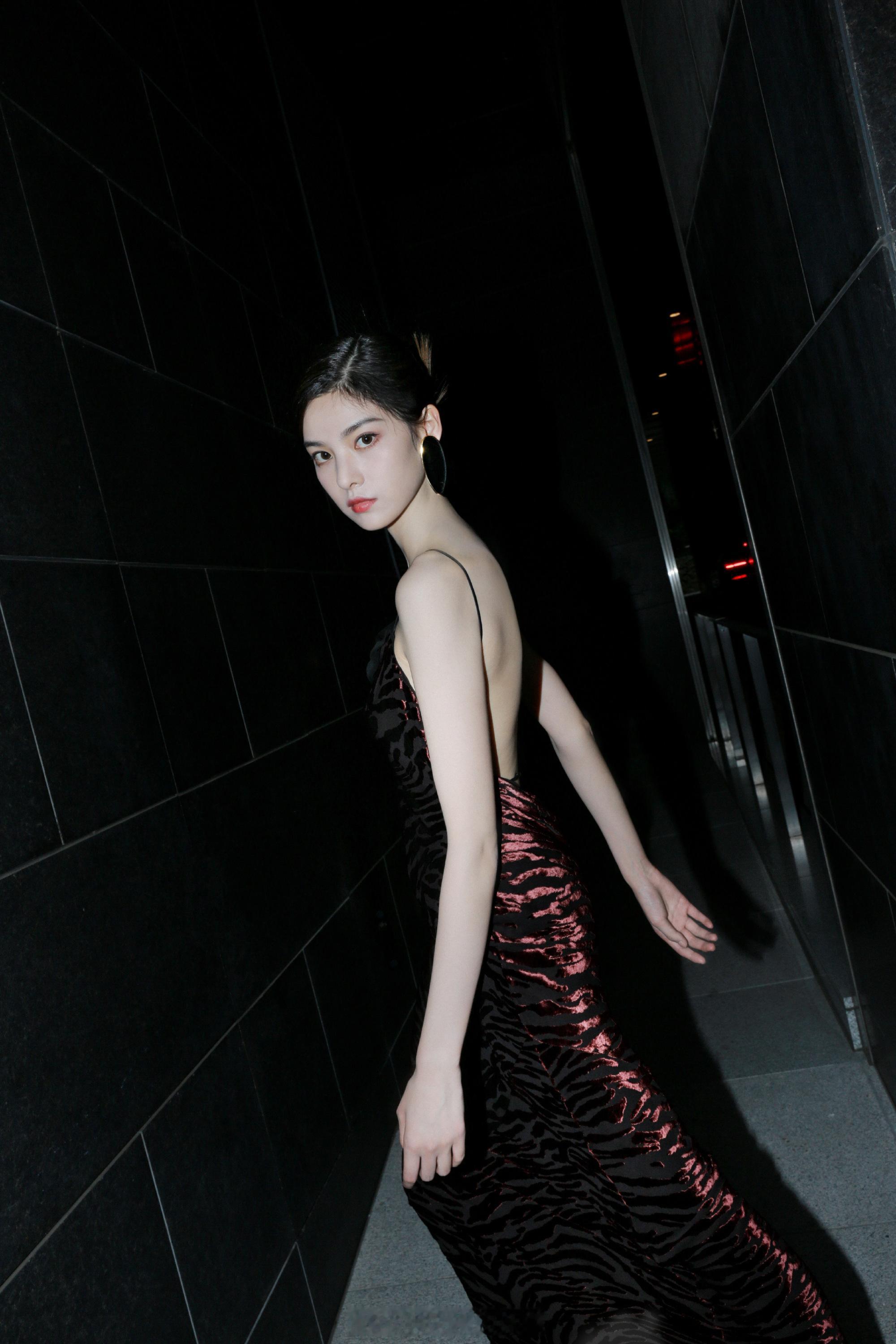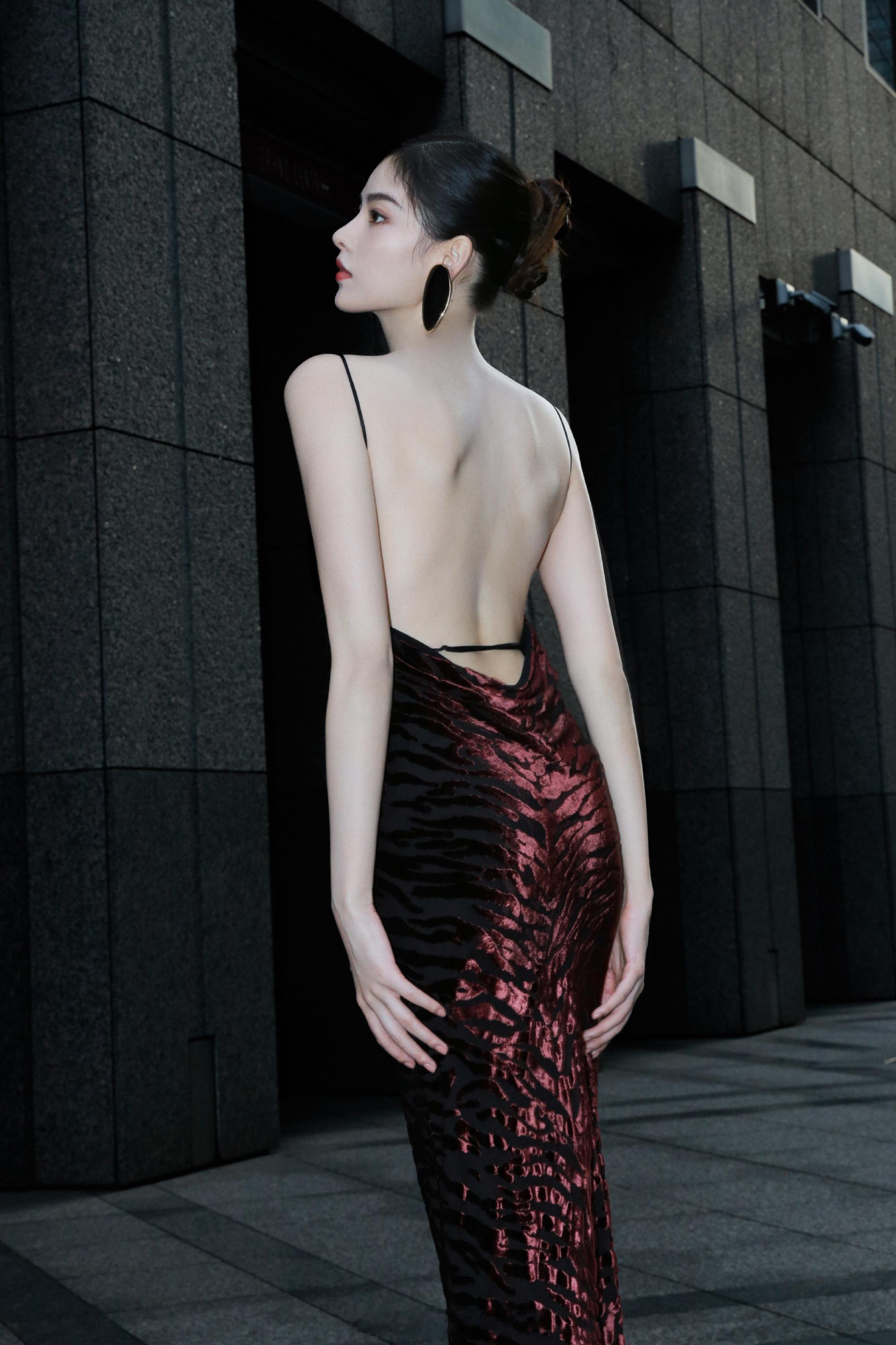 张艺上吊带礼裙美背写真