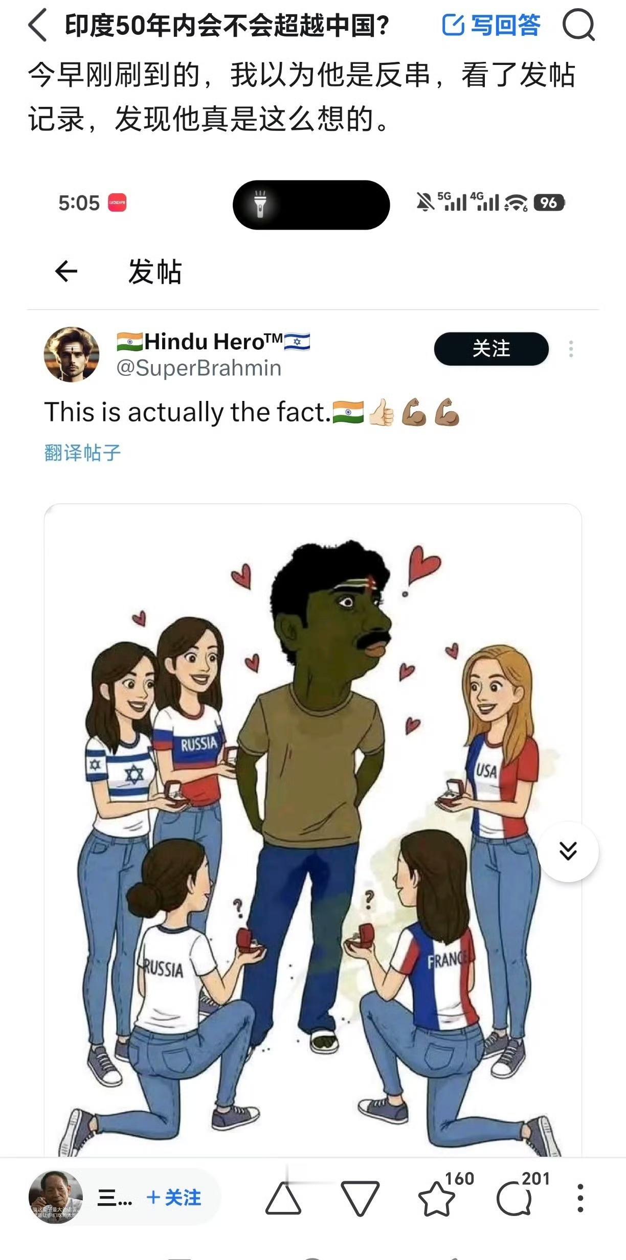 都在说印度男人在幻想,幻想这么多国家的女人都主动献爱献身。 然而,在我们这儿,印度黑丑臭的低种姓男人,确实是某些中国女人的最爱,各种献爱献身,甚至还带回来了一大堆印度人! 甚至某些地方,印度人开餐厅,动辄都是免房租的,直接当洋老爷一样供起来,并且各种宣传自以为很有面儿的!还有把印度飞饼厨子,直接供奉为“外籍专家”,并发放慰问费的! 所以,在这种情况下,不要嘲笑印度男人充满幻想版的自恋了!