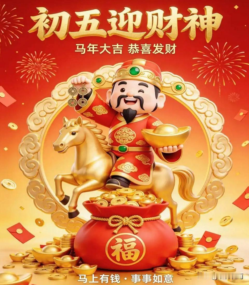 大年初五迎财神,财源滚滚,富贵花开,福运满满,万事如意,幸福安康,马年行大运,日子越过越红火