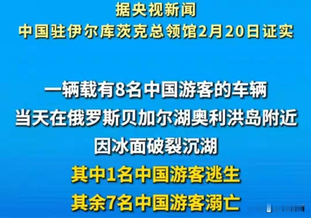 对大自然永远要保持敬畏之心,俄罗斯贝加尔湖发生旅游车辆坠湖事件,1名俄罗斯司机和7名中国游客身亡,1名中国游客逃生,看见这个新闻真的痛心。 贝加尔湖的冰面之美,在于它的自然与野性,但这份美绝不能用冒险去换取。总领馆的反复提醒、过往的事故教训,都在告诉我们:不要轻信所谓的“老司机”和“低价团”,正规的旅游服务、官方的安全指引,才是出行的基本保障。 事发路段早在2月初就已被官方禁行,前往奥利洪岛的冰上渡口也处于关闭状态,当地明确严禁车辆驶上未开放冰面,但涉事司机却无视禁令,才发生了这起悲剧,出门游玩,对于高风险地区还是要慎之又慎,君子不立于危墙之下,希望大家都能汲取教训吧。(图片来源于网络侵删)