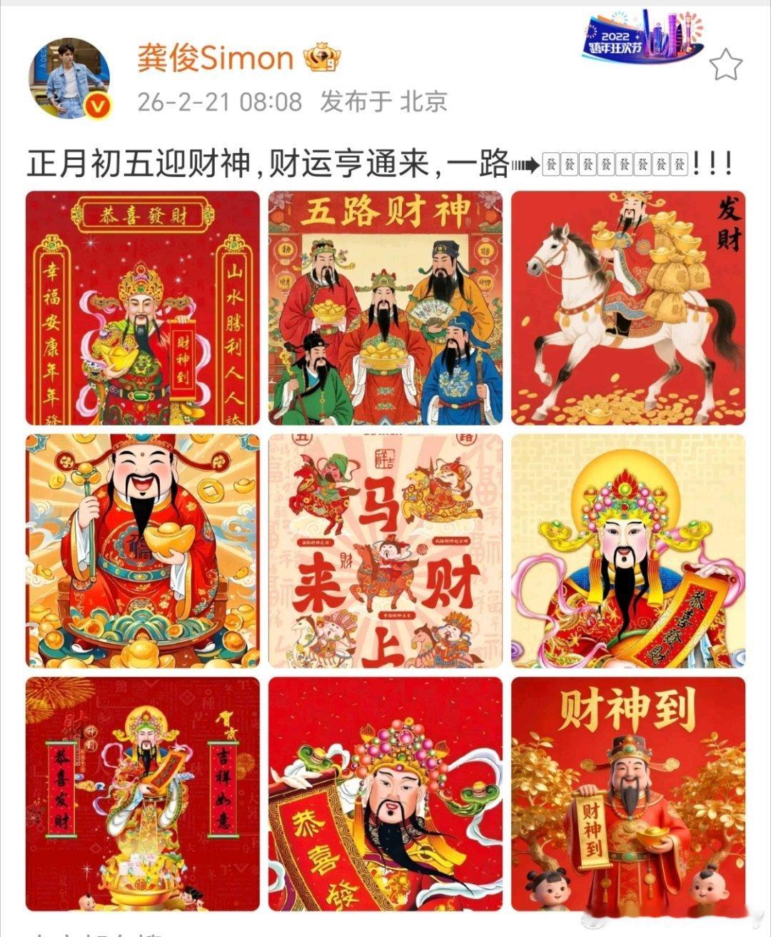大年初五跟龚俊一起迎财神,2026年开开心心发大财! 龚俊连续六年迎财神