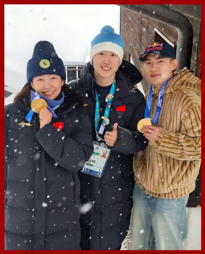 现在是三位奥运冠军的合影啦!米兰冬奥会,中国队第一金+第二金+第四金!晒出自己、和三人合影,含金量超高。此刻皆不凡 徐梦桃王心迪苏翊鸣三人合影