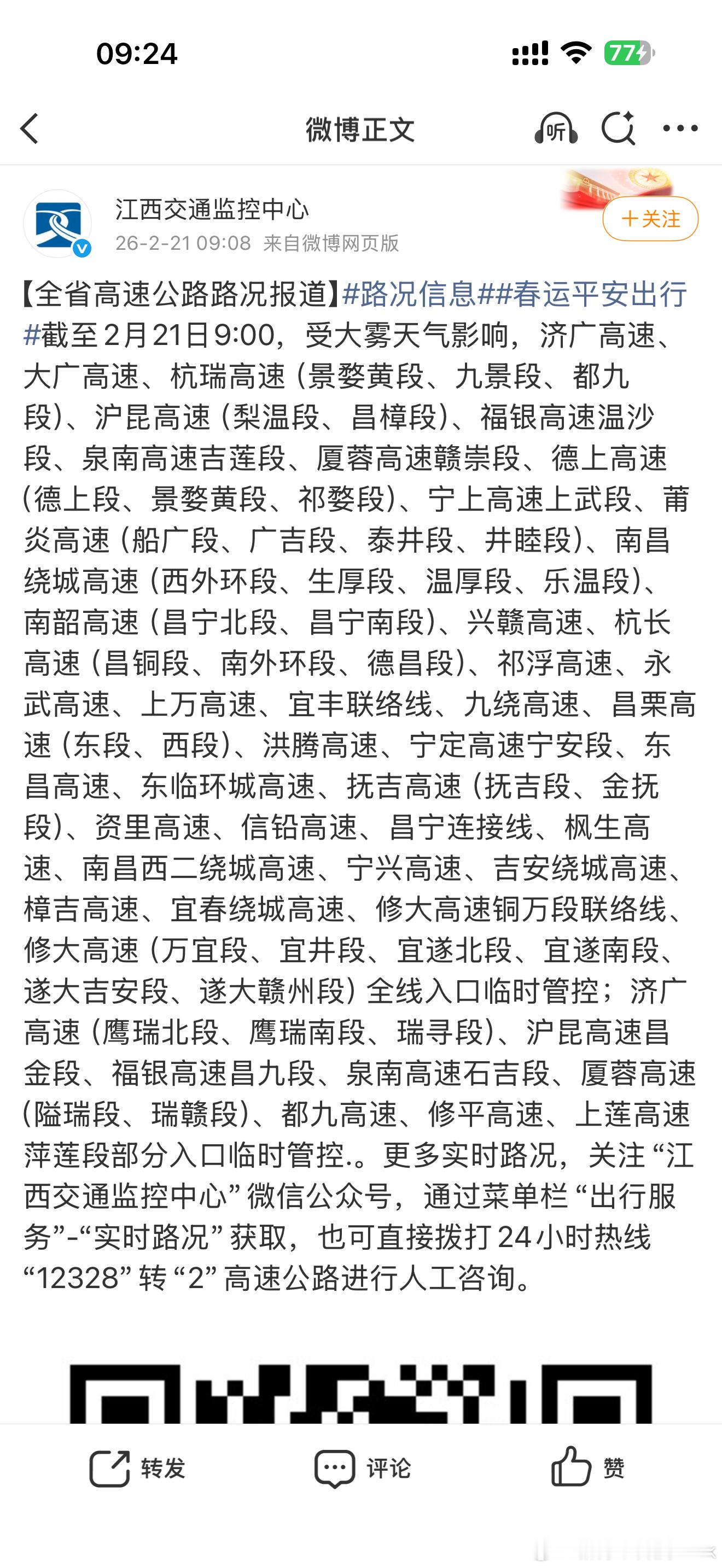 早今天江西大雾,高速入口封闭