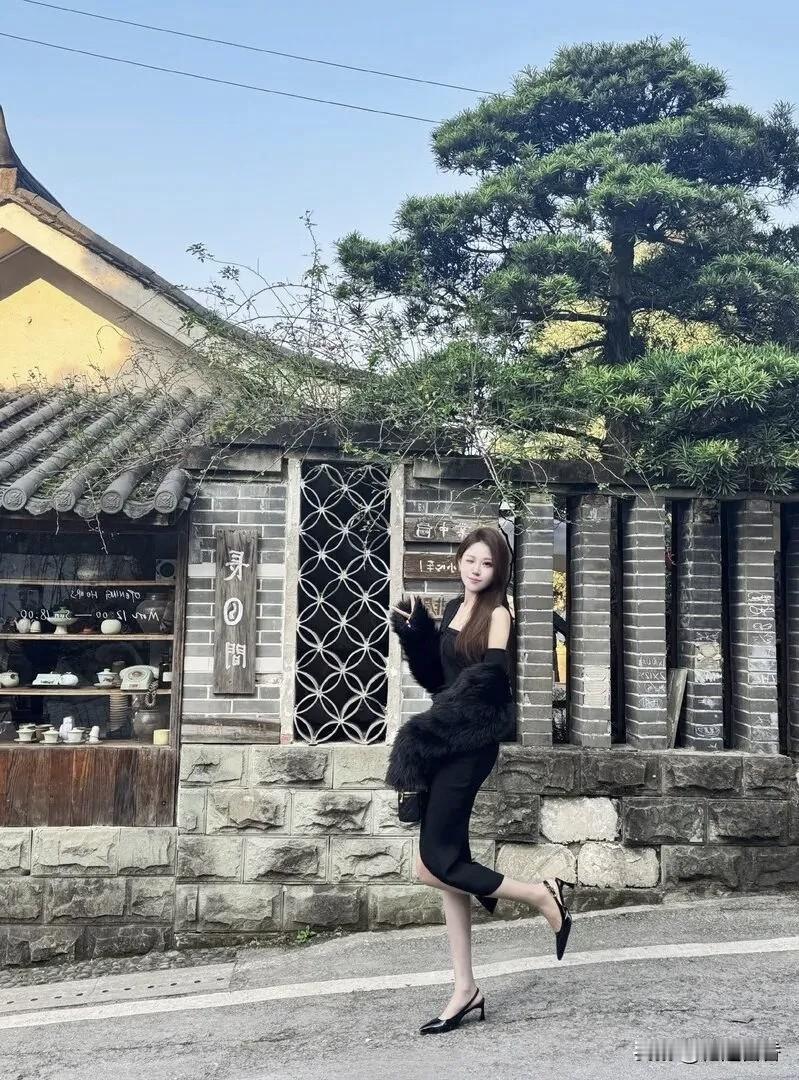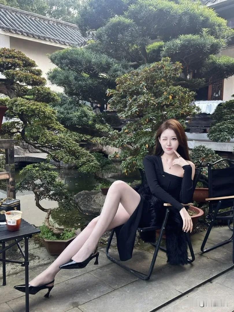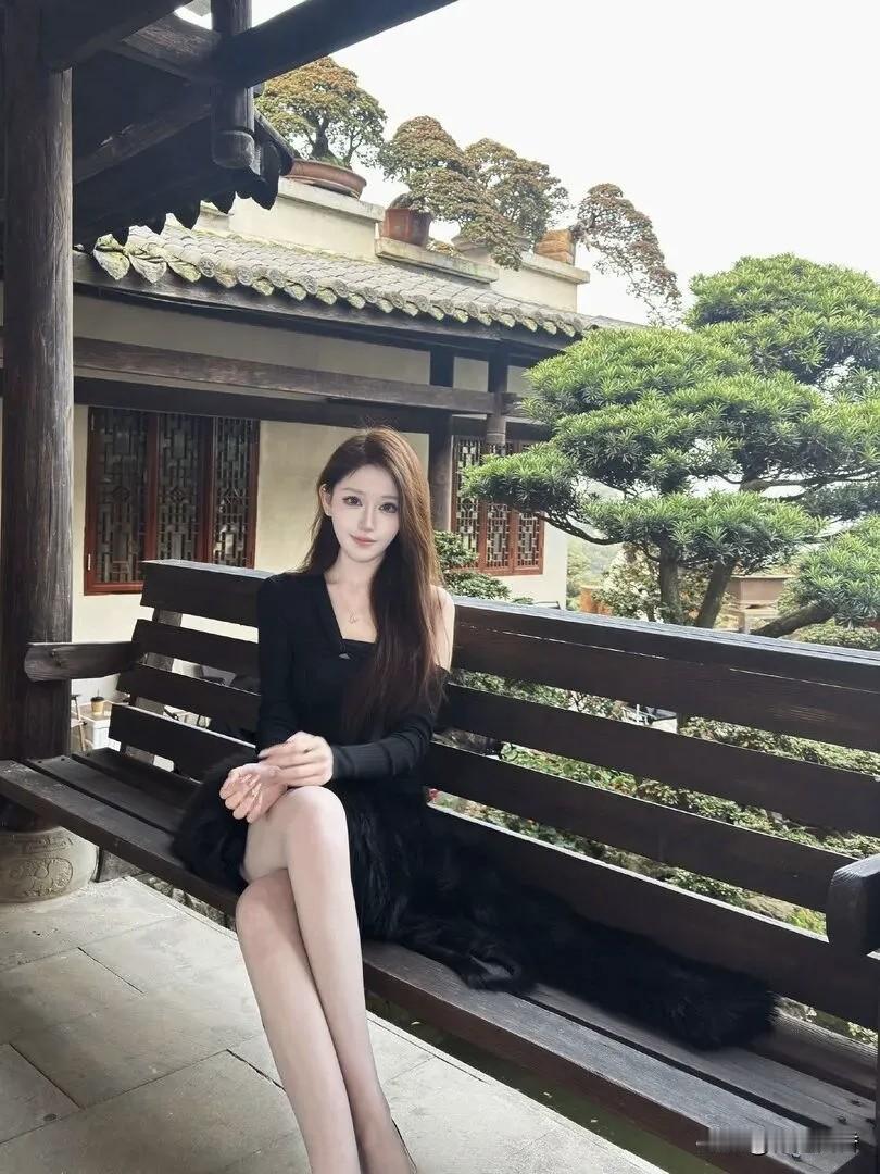 优雅黑裙,庭院中的静谧时光!