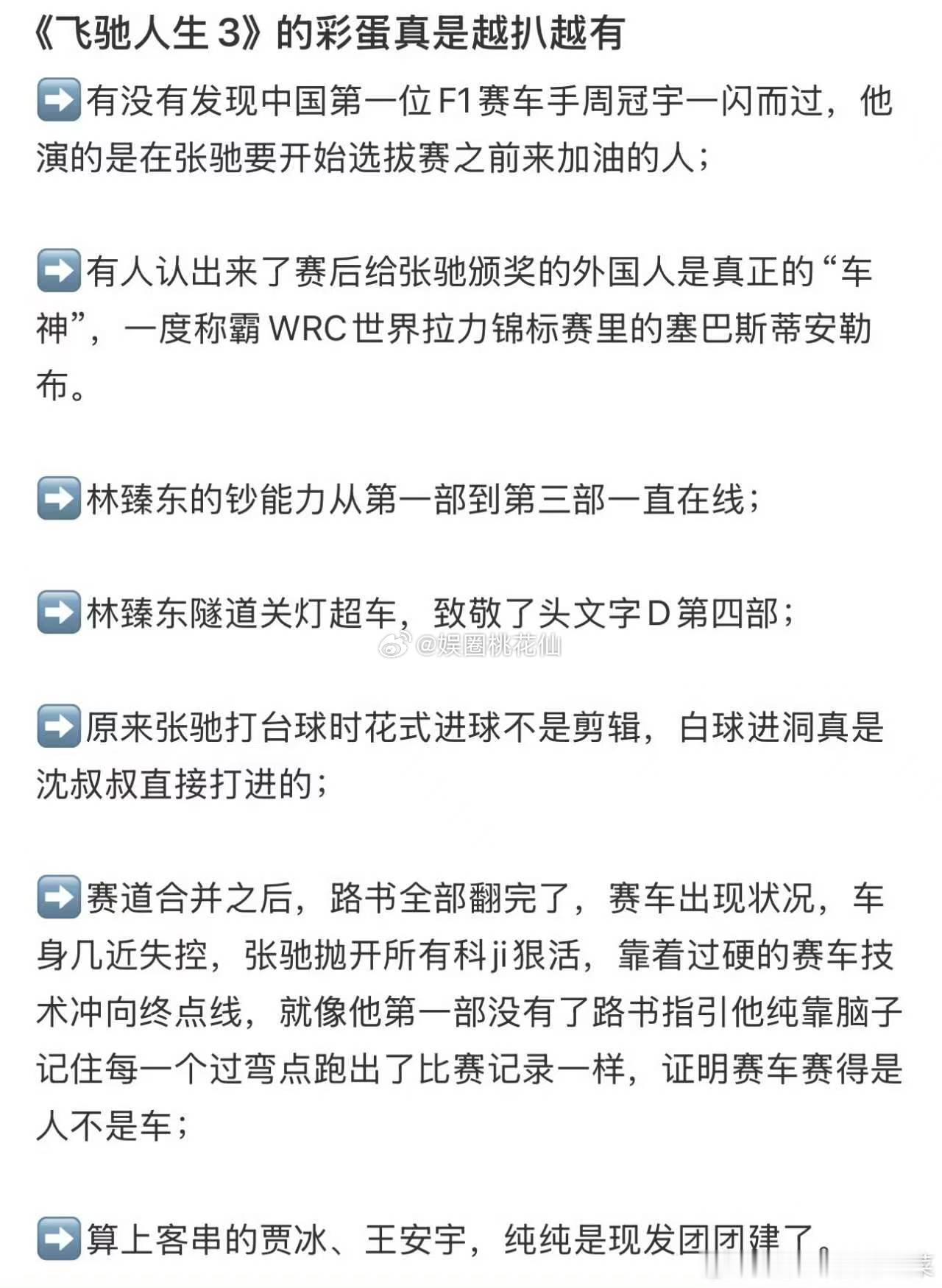 飞驰人生3细节 飞驰人生3把前后三部的故事都串在了一起,叶经理帮张驰筹部件的剧情和第一部形成了完整呼应,同样的选择同样的心意,让角色之间的感情更有厚度也更让人感动