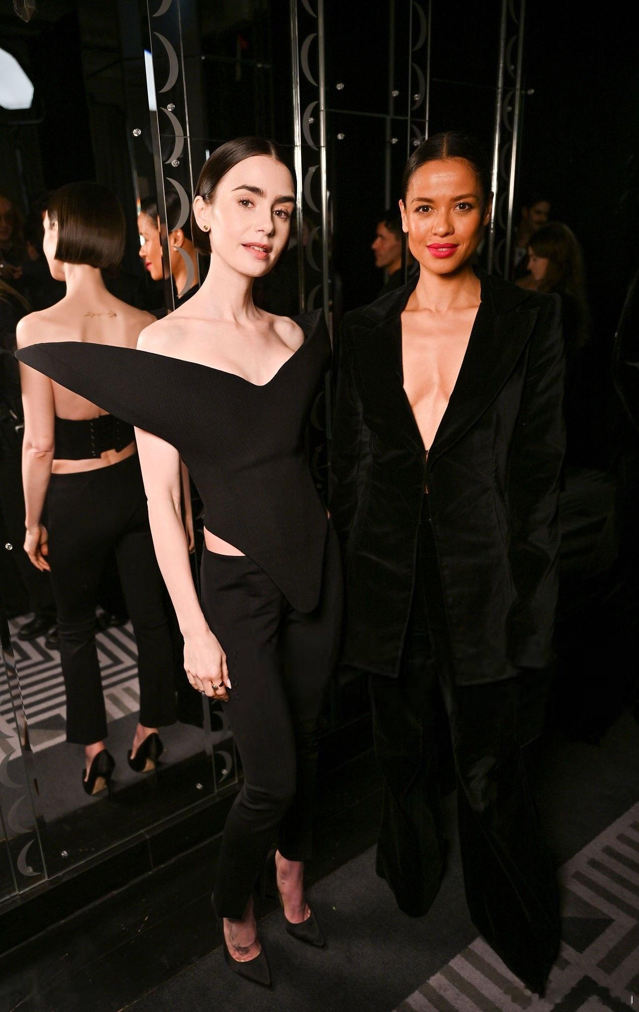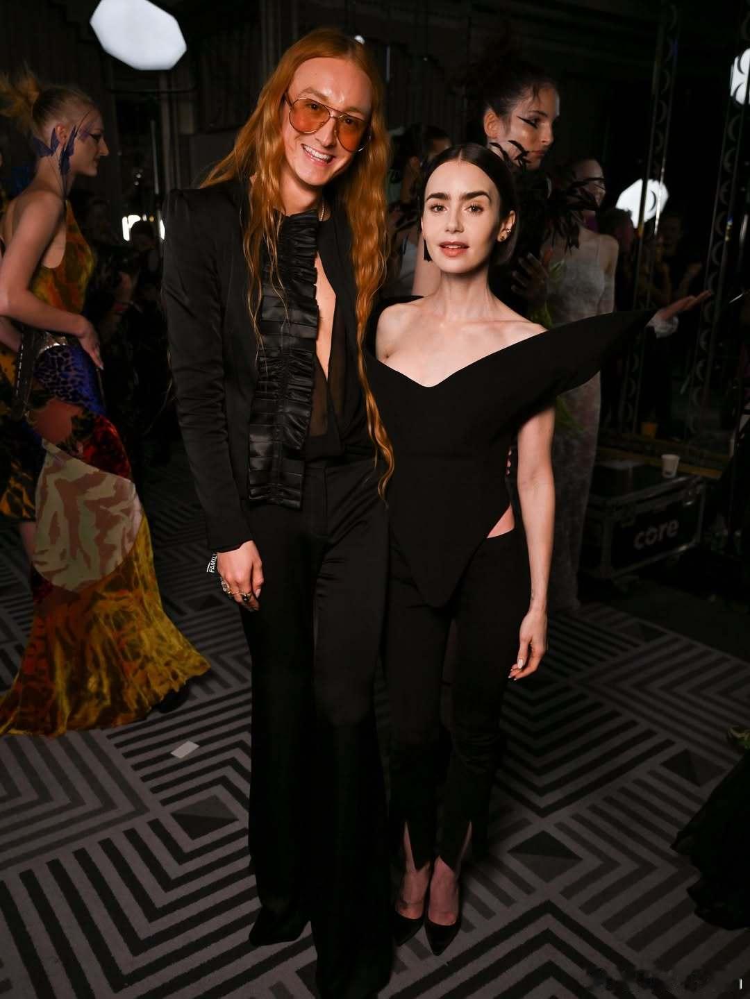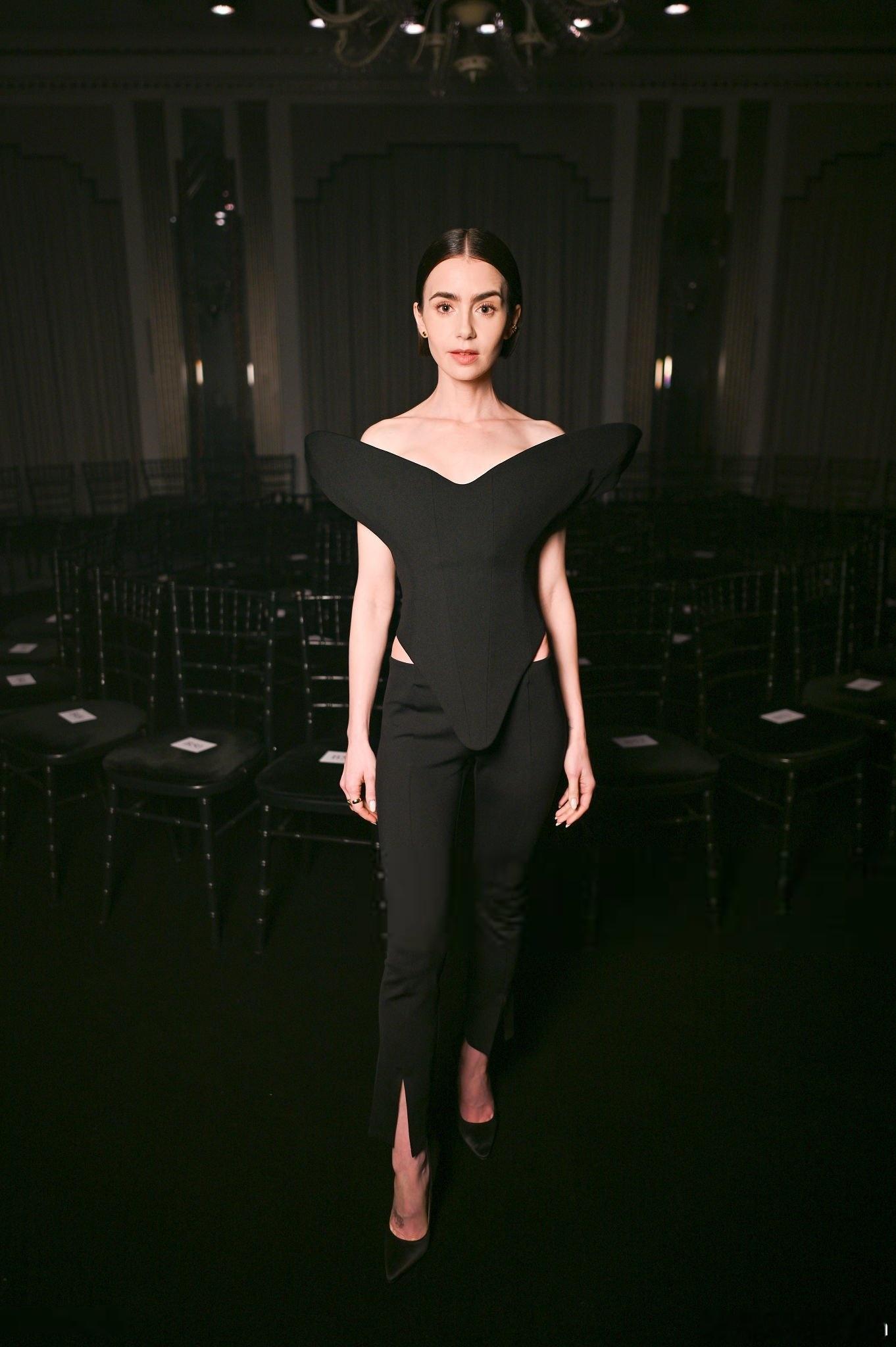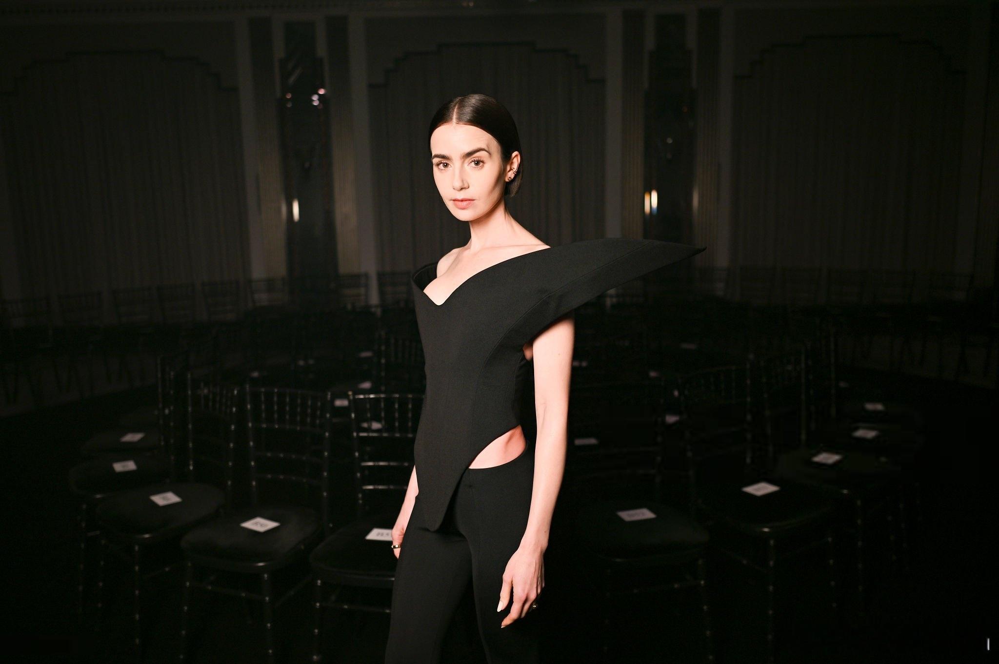 Lily collins莉莉柯林斯在伦敦时装周期间出席观看Harris Reed品牌的大秀,莉莉身着夸张立体肩线上衣搭配九分裤亮相