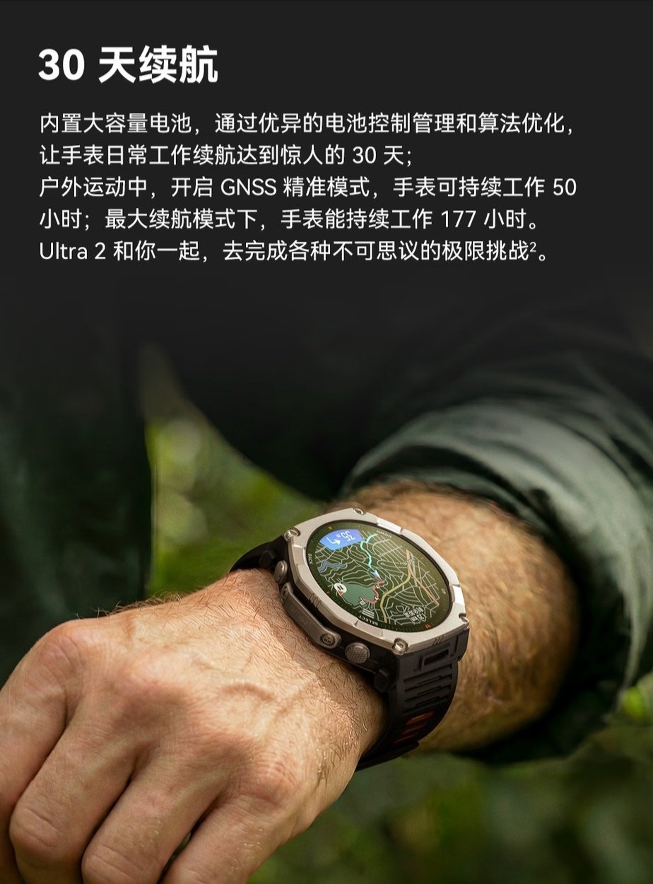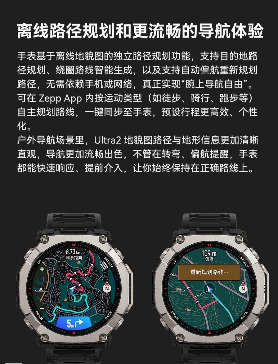 AMAZFIT 华米 T-Rex Ultra 2 手表现已上市,新品主打户外探险人群,具备双频全星座定位、离线地貌图等特性,