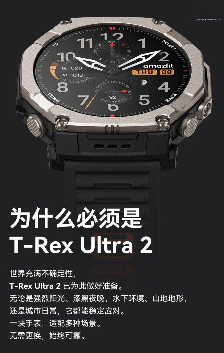 【华米 T-Rex Ultra 2 手表上市:1.5 英寸 OLED 屏、3000 尼特亮度,3999 元】