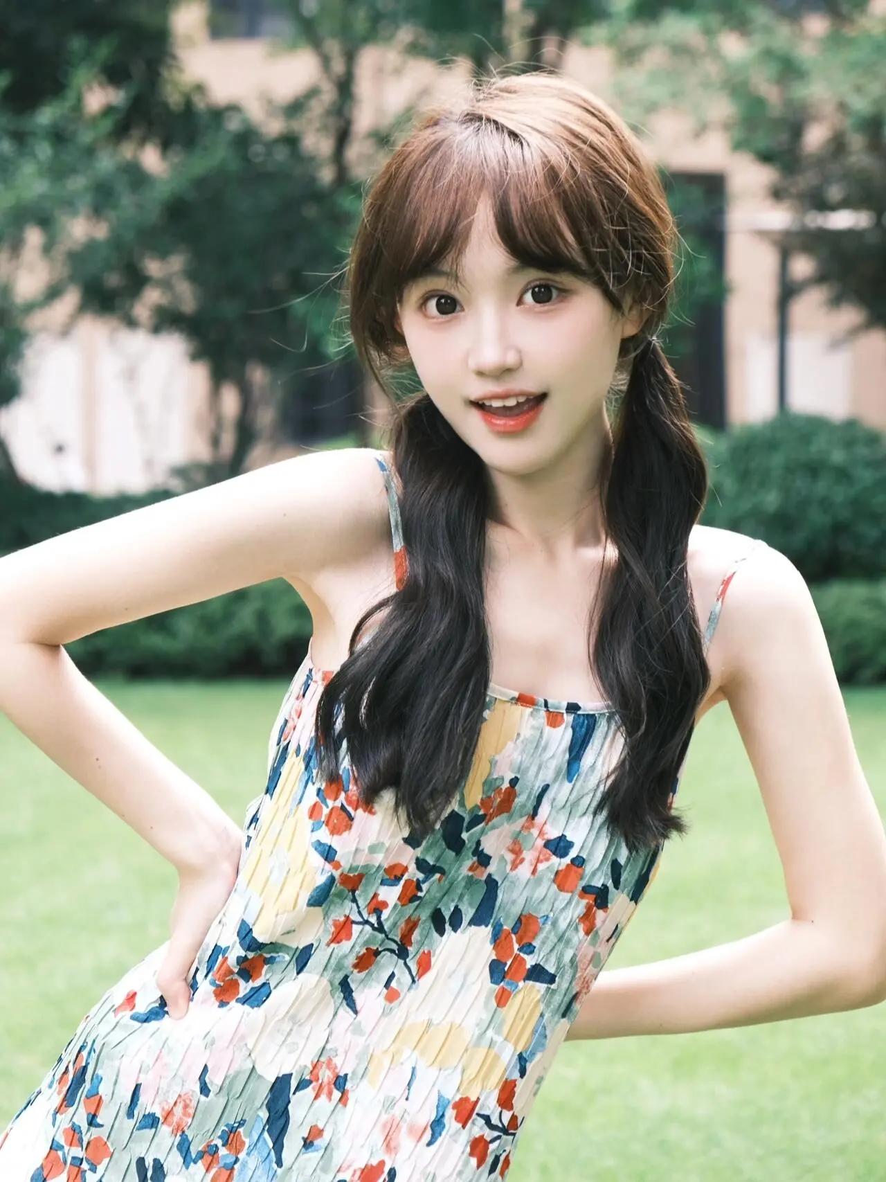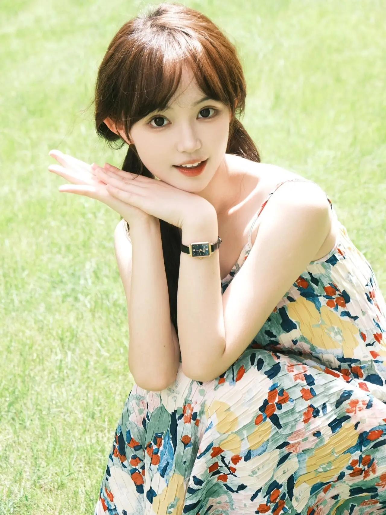 夏日清新少女,花裙飘逸,阳光灿烂,笑靥如花。