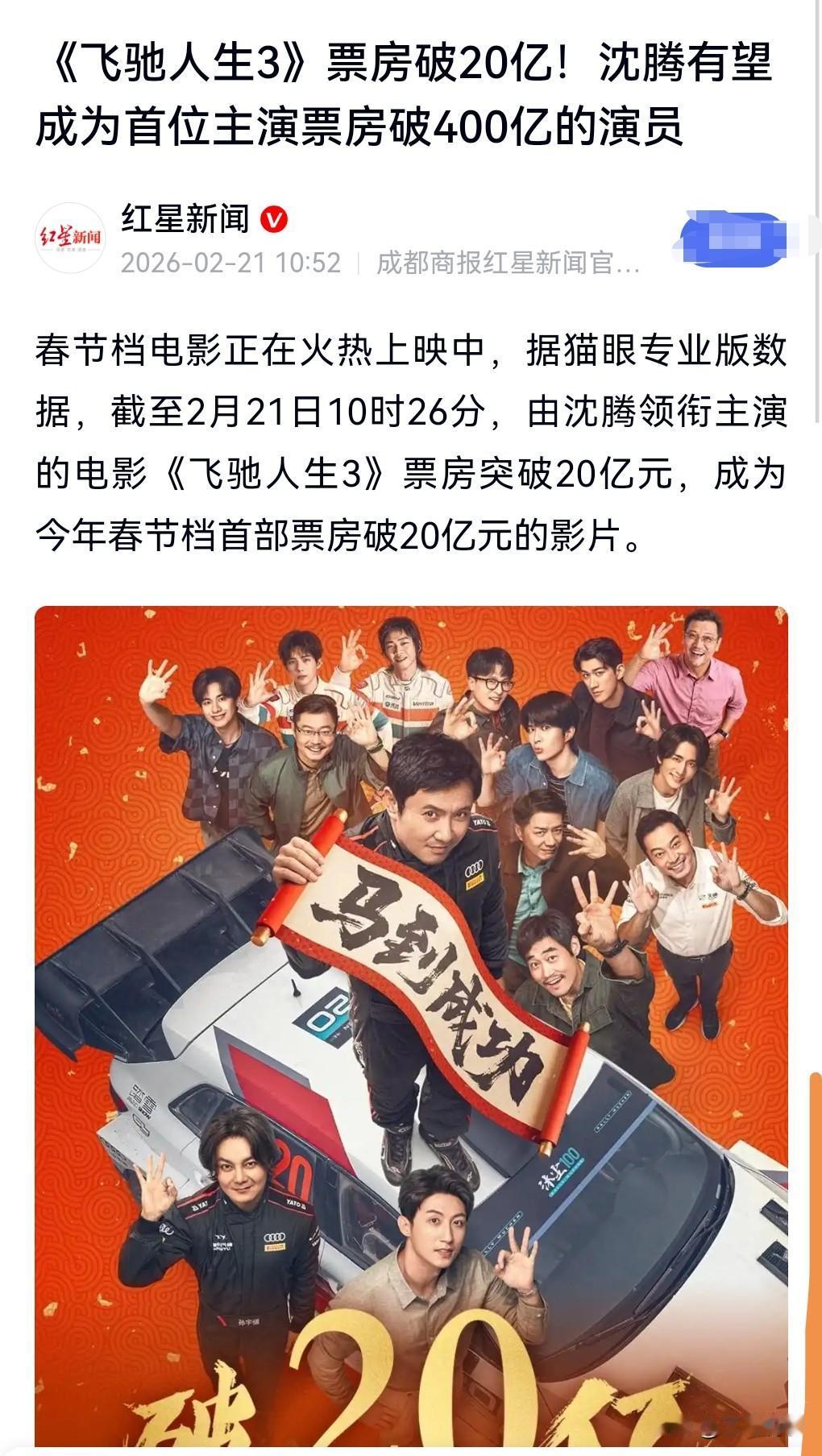 说到喜剧电影,如今的扛把子,那肯定是非沈腾莫属。 他在喜剧方面的影响力实在是太高了。 2月21日热搜,沈腾有望成首位主演票房破400亿演员。 那基本上是板上钉钉的事。 天时地利人和缺一不可。 才能够达到这样的成就。 你得有机会,你没机会,导演不选他当主角,那肯定也达不成。 如今也是当打之年。 你得有大导演大制作,在作品的质量尤其的重要。 只要质量过硬,那几十亿是没什么问题的。 最核心的其实还是作品质量。 他演喜剧可以,他演了一部黑帮片就没什么人看。