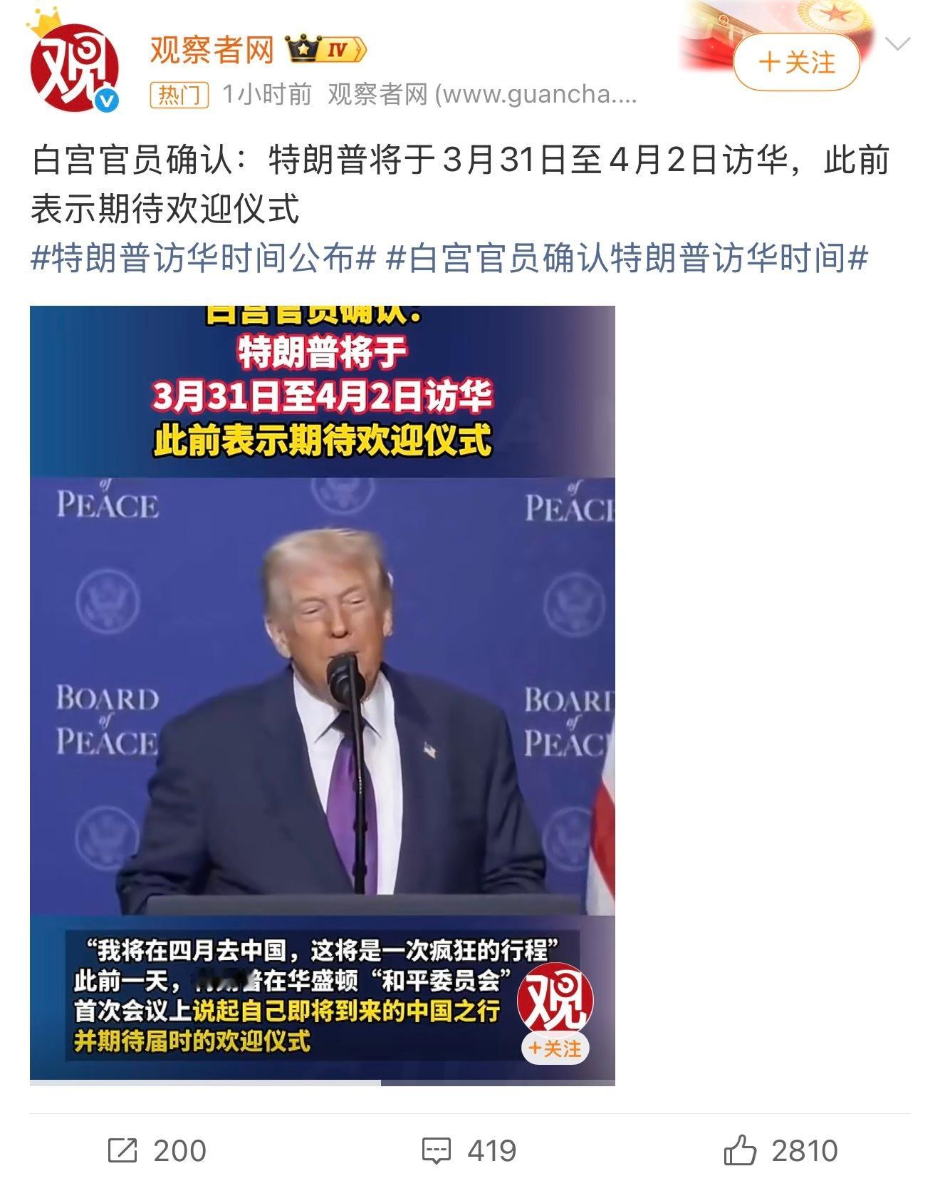 特朗普访华时间现阶段全世界最重要的事,多少人在看着!