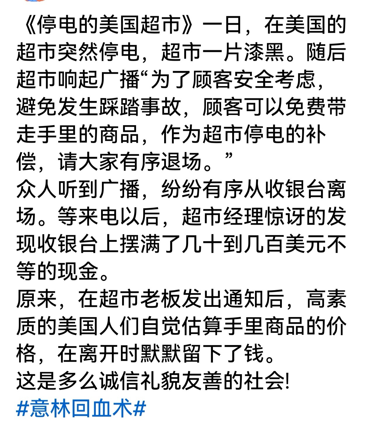 公知们曾经把灯塔国吹得象世外桃园,资本家“慷慨大方”,平民“自觉守信”,在他们眼里,从来没有零元购,哪里有什么斩杀线。