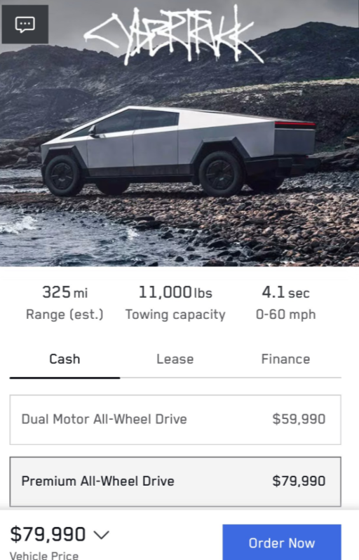 但其实,明眼人都能看出来,特斯拉的价格变动并不完全是依靠成本变动来的…… 更重要的可能是“需求水平”。 21日,马斯克在社交媒体回复网友关于59990美元的Cybertruck仅售10天,10天之后的售价时,马斯克回应称“这取决于我们在这个价格水平上看到的需求量”。 相较于以往特斯拉惯用的“成本定价”原则,马斯在这次倒是直截了当,“看需求”。 说起来,Cybertruck这款车也有点高开低走的味道,发布之初超高的关注度、坊间传闻称累计近200万辆的预订量,但截止目前,正式上市后好像一共也才交付了几万辆(约5.5–6万辆)。 之所以销售不及预期,相信很重要的一个原因是价格比最初预期的高了非常多…… 如今,特斯拉将Cybertruck的起售价降至6万美元以下,不知道能不能让这款车再回到巅峰?