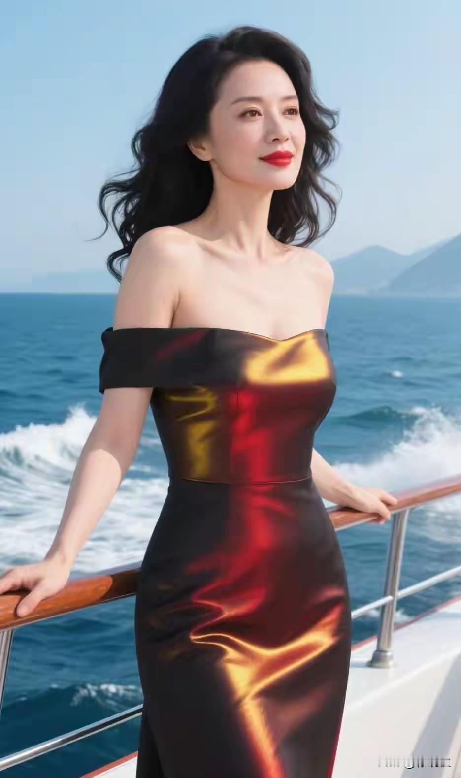 海边长裙韵味生 , 恰是春风拂柳轻。 笑颜如花绽芳华, 眼眸长兴映流霞。