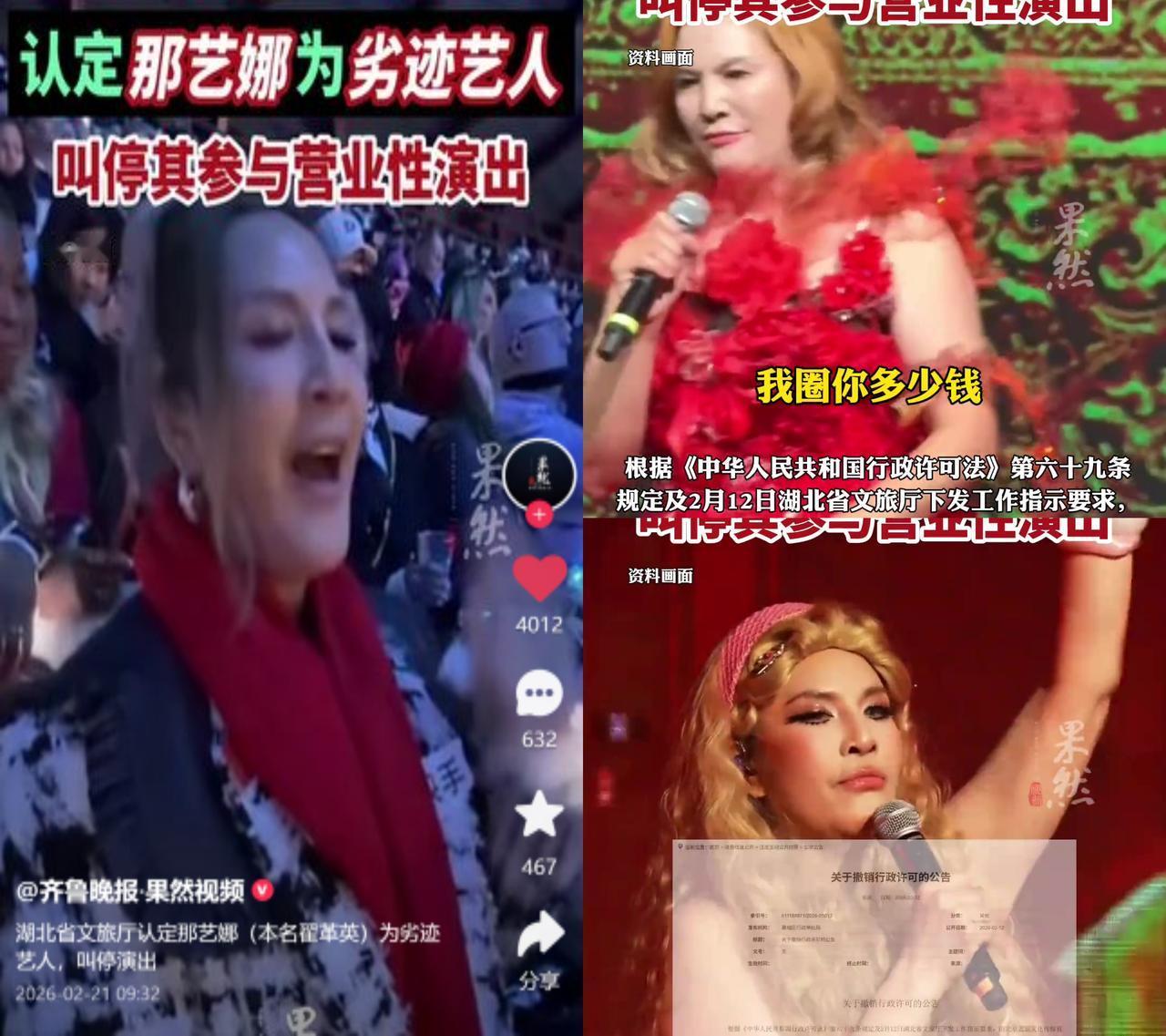 那艺娜被定性劣迹艺人! 这姐们的路子绝了:早年用AI换脸装俄罗斯人,卖假特产骗粉丝,被平台永久封禁。 转头改名当歌手,靠神曲爆火开巡演,假唱甩锅音响师,还邀涉毒劣迹艺人同台捞金。 直到有关部门出手,直接定性她为劣迹艺人,叫停所有演出。 这哪是网红翻船?根本是流量时代劣迹艺人变现灰色链条的活例子! 线上封了就转线下,利用线上线下监管的信息差,换个人设换个赛道,就能接着圈钱。 普通主播犯点错可能直接凉透,她倒好,屡犯劣迹还能拿代言、上杂志,赚得盆满钵满。 敢情之前的封禁、批评,在她眼里都是涨热度的跳板? 相关单位这次从线上追到线下,终于补上了监管的缝隙,但想想这些年她钻的空子,真的太讽刺了。 流量从来不是劣迹的挡箭牌,这种钻空子的变现口子,早该彻底堵死! 你们说,还能让这种人继续收割吗?
