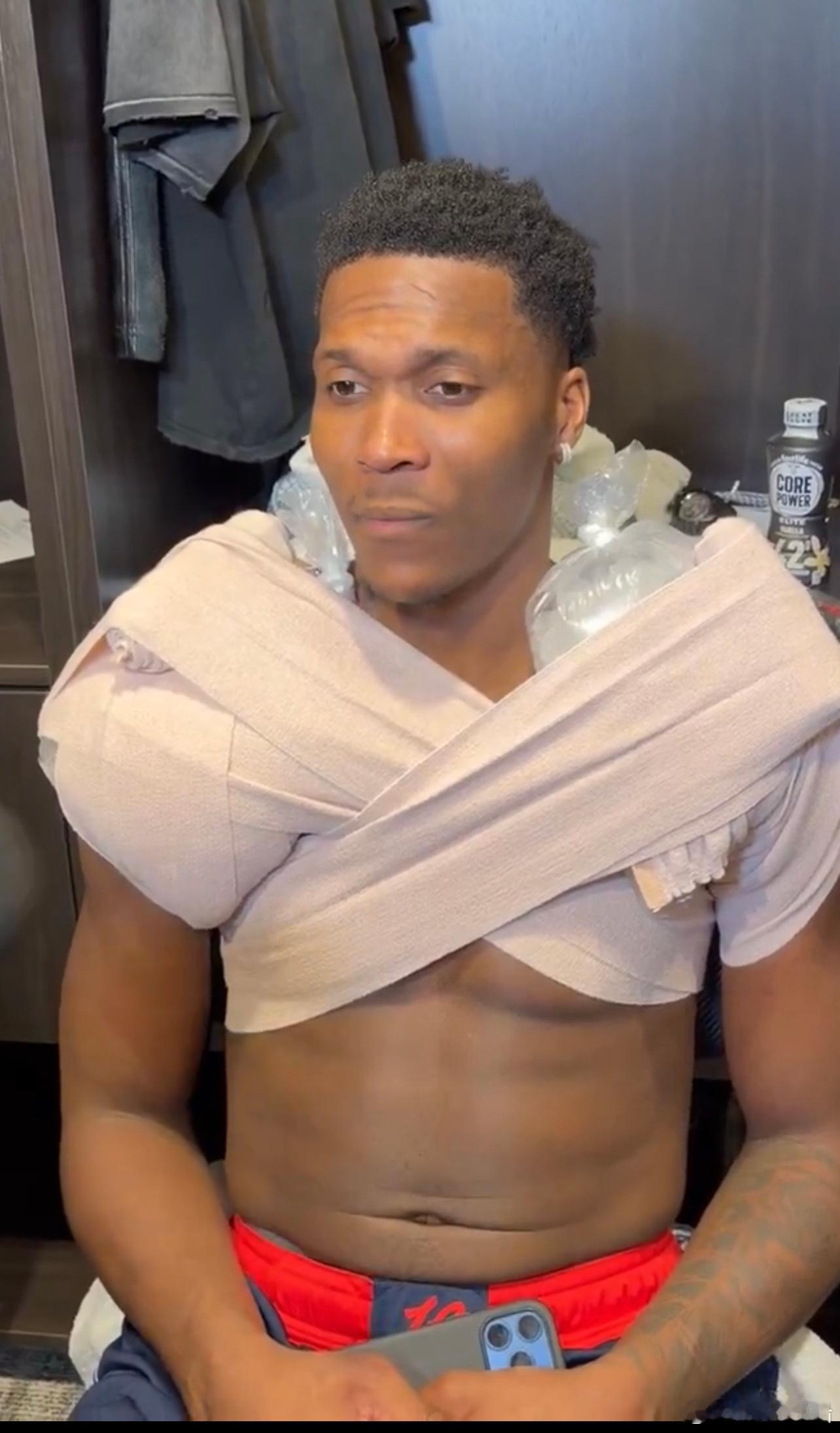 随队记者:约翰·柯林斯说他缝了几针,但感觉还好。赛后他精神状态不错。体育ai过大