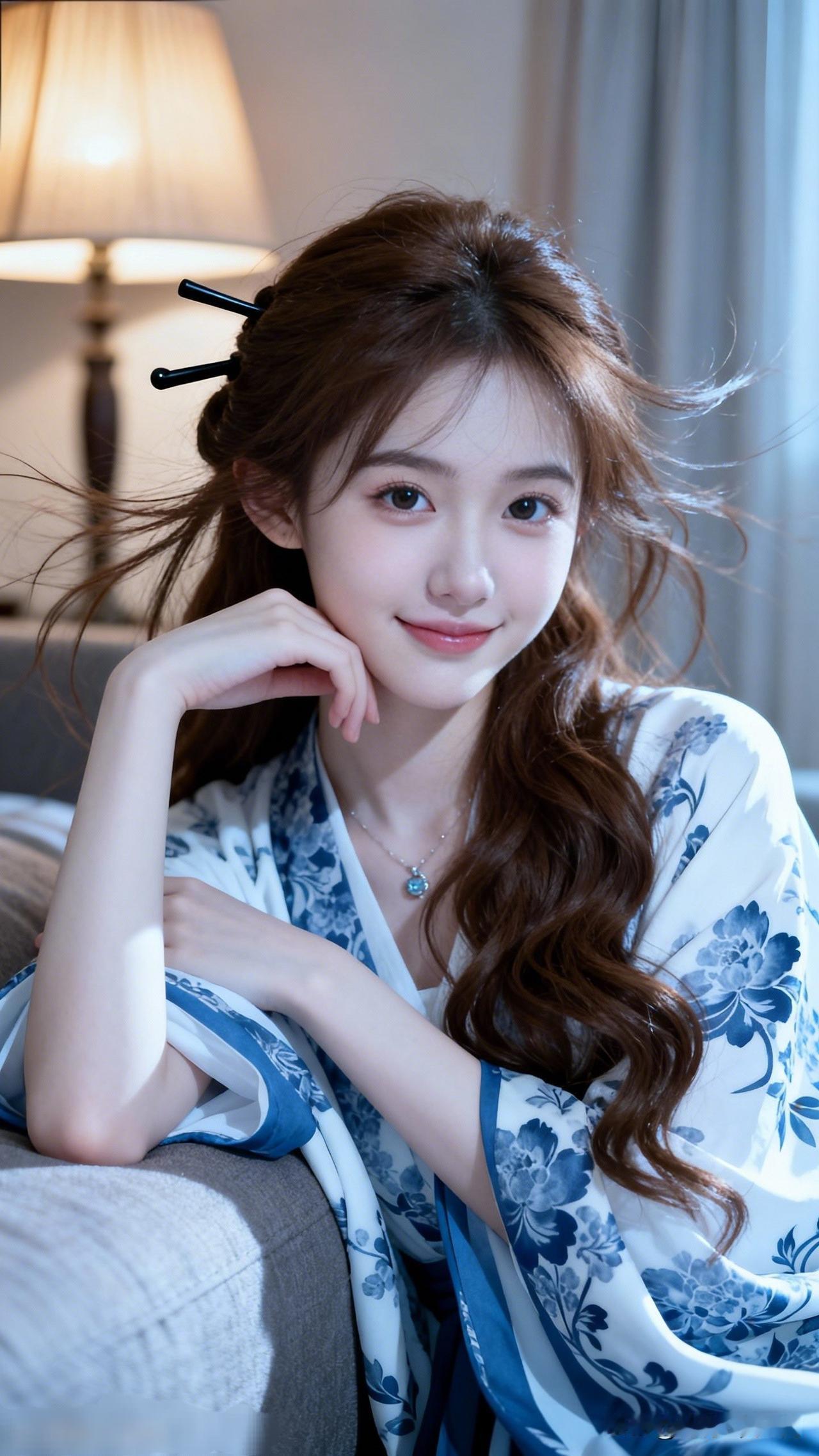 温柔少女风,蓝白相间的和服,自然光下的甜美笑容。在你眼里,什么样的女人最漂亮