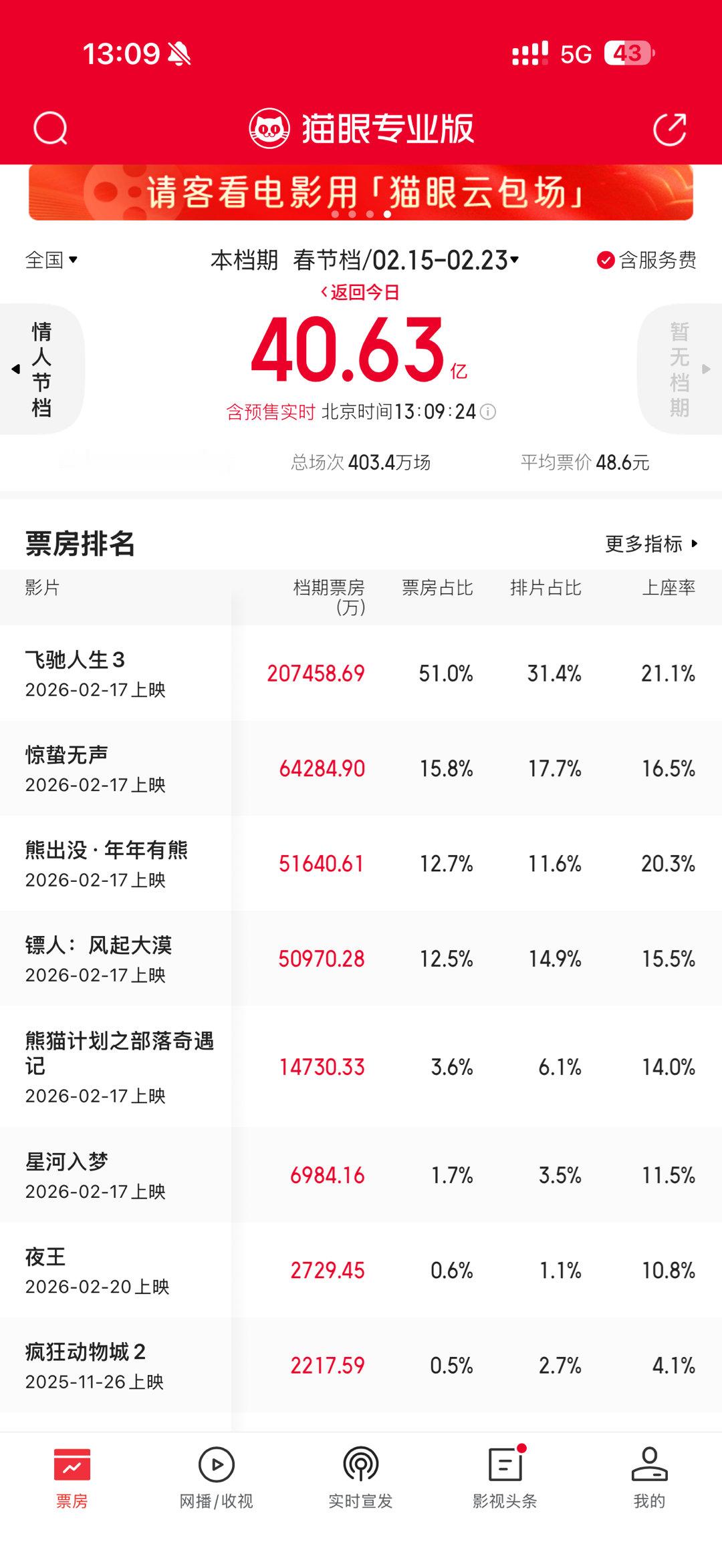 不可否认飞驰3有IP底子、沈腾加持,喜剧+赛车的路子很稳,笑点和情绪都踩在春节档刚需上,但五天破20亿、几乎扛起大盘一半票房,更现实的原因可能是同档期对手真的太不给力了,要么类型不对味,要么口碑撑不起来,要么受众太窄,观众进影院翻来翻去,发现能全家看、轻松不踩雷的选择就这一个,没得选只能选它。