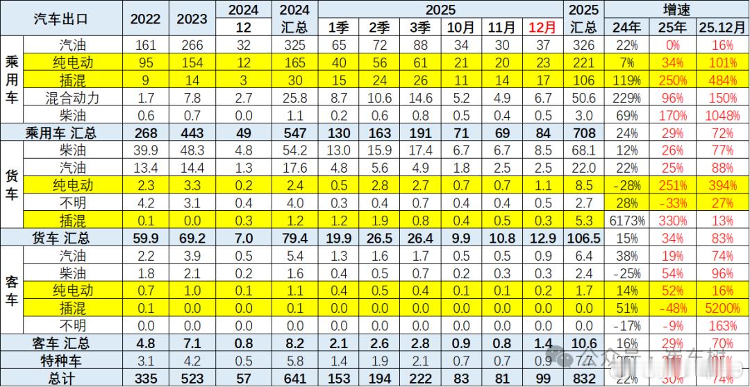 2025年海关数据显示中国汽车整车出口达832万台