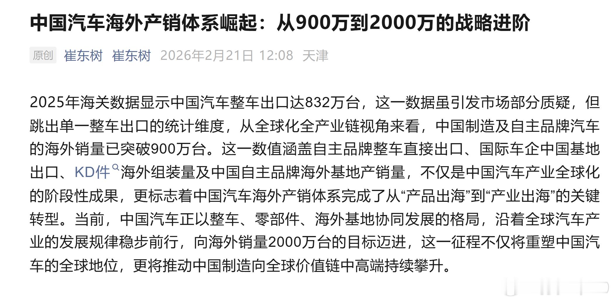 而从全球化全产业链视角来看,中国制造及自主品牌汽车的海外销量已突破900万台