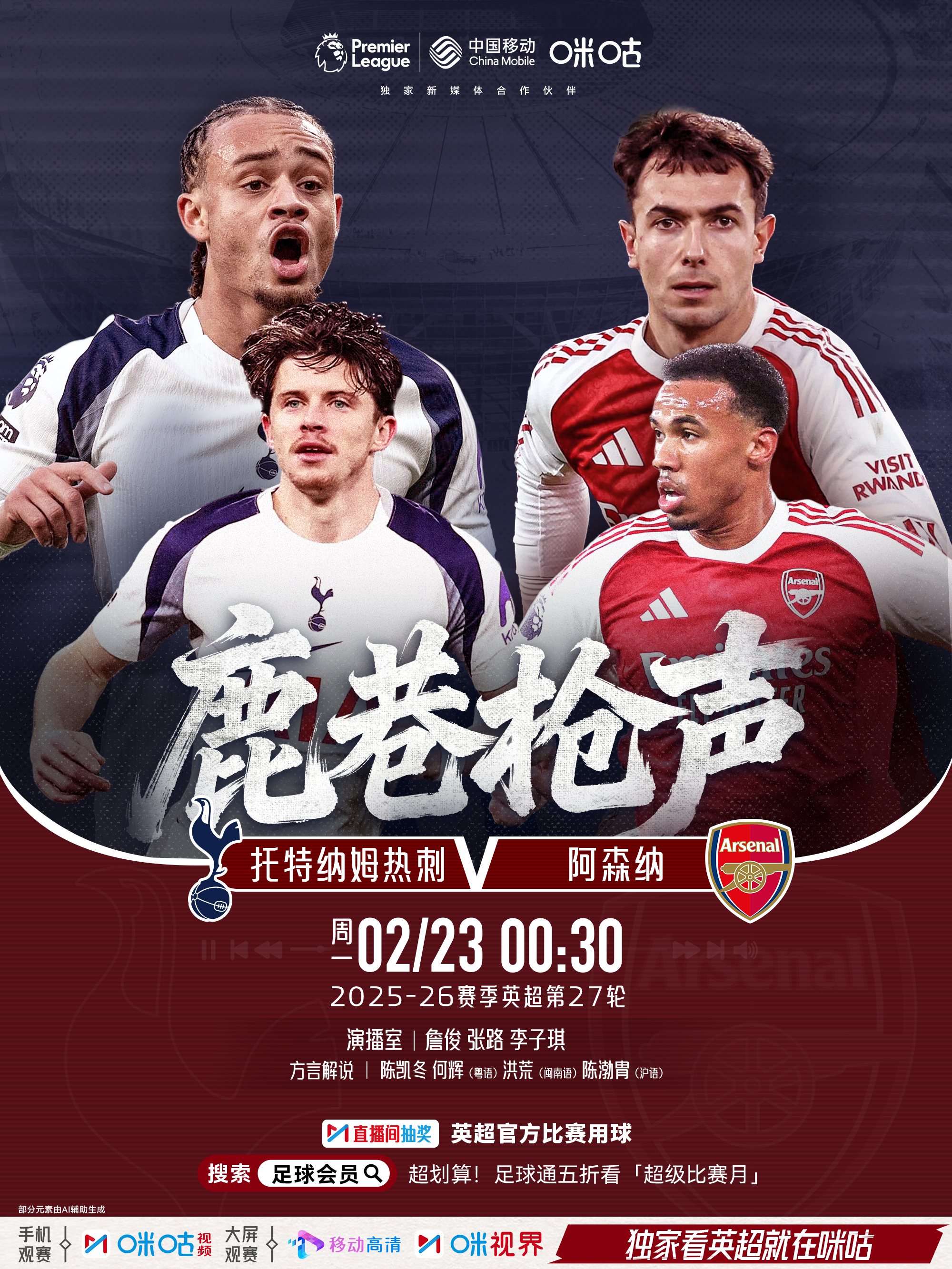 🦁 𝗣𝗿𝗲𝗺𝗶𝗲𝗿 𝗟𝗲𝗮𝗴𝘂𝗲🐦 热刺 𝙫𝙨 阿森纳 🔴⚪📺 《鹿巷枪声》🔒 2月23日 0:30 周一#独家看英超就在咪咕##新春尽享五大联赛只在咪咕#