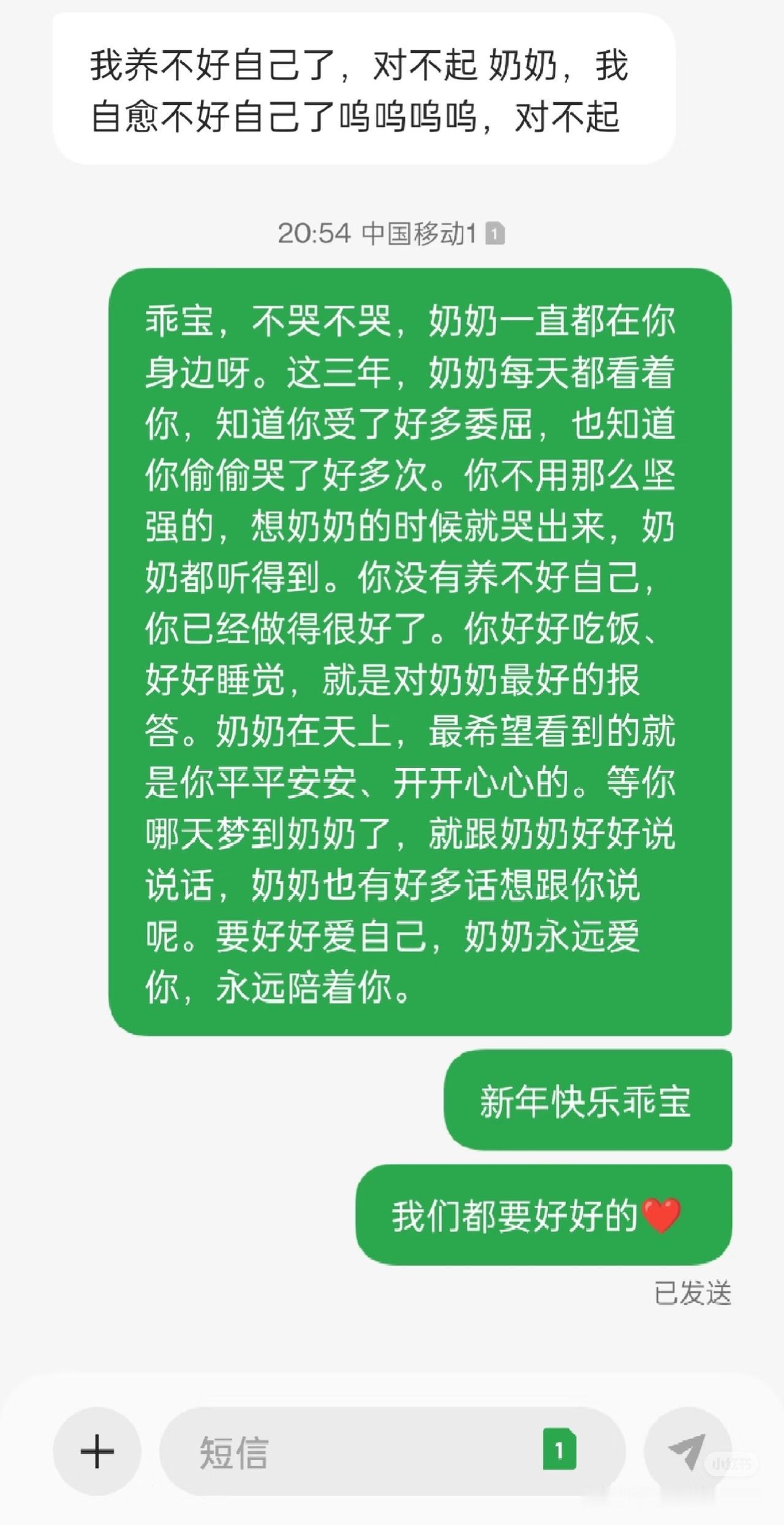 “泪目!”重庆,女孩奶奶去世3年,她太过想念奶奶,就给奶奶生前用的手机号发了条短信,碎碎念道:奶奶,我好想你,你怎么一次都不来梦里看看我?你走后,我总是在夜里哭醒……现在的号主看到短信后,很是触动,为了给女孩带去一丝慰藉,她模仿奶奶的语气回道:孩子,不哭!你好好吃饭,好好睡觉,就是对奶奶最好的报答。奶奶在天上,最希望看到的就是你平安开心,奶奶永远爱你!女孩看到这个回信后,彻底泪崩了。 1月11号那天晚上,女子手机震了一下,来了一条短信,但她压根没当回事。 在这个除了验证码和推销广告没人正经发短信的年代,一条陌生号码的消息,通常只有被忽略的份儿。 就这么着,这条短信在女子的收件箱里待了整整一个月。 直到这两天,因为工作消息的提醒,女子才想起来还有个未读短信。 她本来以为又是什么垃圾广告,手指划开一看,整个人却愣住了。 短信的内容不短,就像是一个人对着树洞自言自语的独白。 短信里写道:奶奶,我好想你,三年了,你怎么一次都不来我梦里看看我?这三年我总是在夜里哭醒,情绪总是莫名崩溃,我真的好想你……我养不好我自己。 看着字里行间,全是压得人喘不过气的难过,哪怕隔着屏幕,女子都能感觉到那个女孩一边打字一边掉眼泪的样子。 那一刻,女子心里像是被什么东西狠狠揪了一下。 女子知道,奶奶生前肯定是这个手机号的主人,如今奶奶走了,女孩把思念全部化为碎碎念发了过来。 女子也是爷爷奶奶带大的。小时候爸妈忙,她是在奶奶的蒲扇底下长大的。 奶奶走的那年,她也觉得天塌了,那种在这个世界上突然没了“根”的感觉,她太懂了。 看着屏幕上那些碎碎念,她仿佛看见了当年的自己。 女子没有回复“你发错了”,也没有回个冷冰冰的“?”。她也一个字一个字地敲了起来。 女子模仿奶奶的语气,说:乖宝,不哭!这三年,奶奶每天都看着你,知道你受了好多委屈,也知道你偷偷哭了好多次。你不用那么坚强的,想奶奶的时候就哭出来,奶奶都听得到。你没有养不好自己,你已经做得很好了。你好好吃饭,好好睡觉,就是对奶奶最好的报答。奶奶在天上,最希望看到的就是你平平安安,开开心心的。要好好爱自己,奶奶永远爱你,永远陪着你。 消息发出去过了一阵,那边回了。 那女孩感激地回到:新年快乐,谢谢陌生人,收到你的回信瞬间绷不住大哭了,奶奶去世后两年里天天睡梦中哭醒,我知道世界上再也没有喜欢,再疼我的人了,谢谢你选到这个手机号作为你的手机号,抱歉打扰到你了! 女子看着对方的回复,心里酸酸的。 她知道,女孩最依赖的依靠没了,只能试图通过这种方式,去怀念那个再也回不来的人。 如果她的回复能给女孩带去一丝慰藉,那她愿意在女孩以后想念奶奶的时候,继续跟她聊天。 女子一点也没觉得被对方打扰。相反,她觉得自己像是在大冬天的路边,无意间接住了一片飘落的雪花,虽然它很快就化了,但那一点点凉意和湿润,却让她觉得自己还真实地活着,还能感知到别人的温度。 女子回到:真的不用道歉,也别觉得是打扰,能在这个节点接住你的心事,对我来说也是很温暖的缘分。失去最疼自己的人,心里的缺口本来就需要很久才能慢慢愈合,你隔三差五的崩溃,突然掉的眼泪,都不是软弱,而是你太想念奶奶,也是奶奶曾经把你爱得那么深的证明。请一定相信,你从来都不是没人疼的孩子,奶奶的爱会化作细碎的温柔陪着你,而你本身,也值得这世界所有的善意。谢谢你的祝福,也真心祝你马年平安顺遂,工作能少点烦恼,日子里能多些小确幸,慢慢的,能笑着想起奶奶的模样。 原来,人和人之间的羁绊,真的不需要认识多久,也不需要多深的交情。有时候,仅仅是因为我们都曾被同一个人温柔地爱过,仅仅是因为我们都尝过失去的苦,就能在一瞬间成为彼此的依靠。 这世上哪有那么多理所当然的善意呢?大多都是像这样,一个不小心发错的号码,碰上了一个愿意停下来听你说话的人。 愿那个女孩之后能睡个好觉,愿所有像她一样想念奶奶的孩子,在撑不下去的时候,都能有个哪怕是陌生的怀抱,能接住她们的眼泪。 这人间虽苦,但总有人,愿意为你哪怕只亮一秒钟的灯。 对此,你怎么看? 关注@运良说法