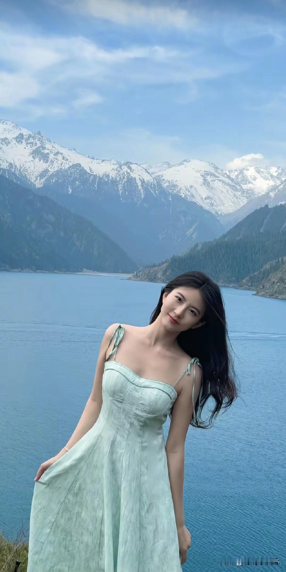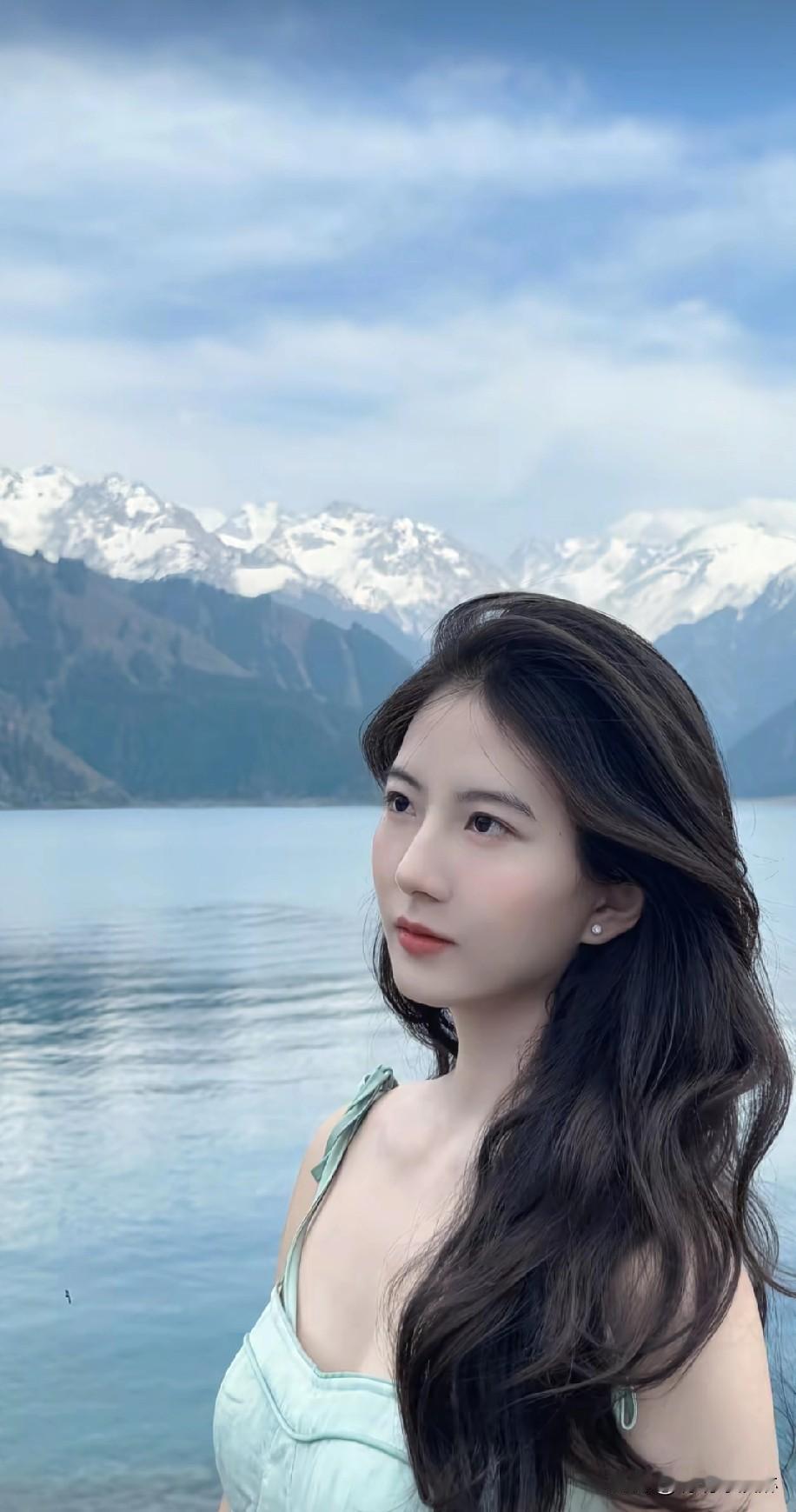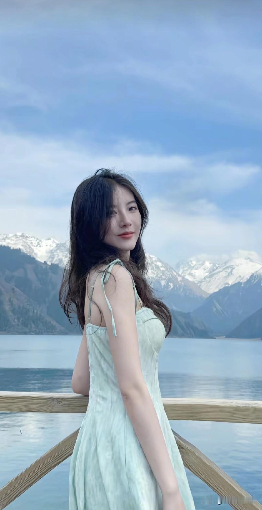 阳光下的少女,湖边的休闲时光