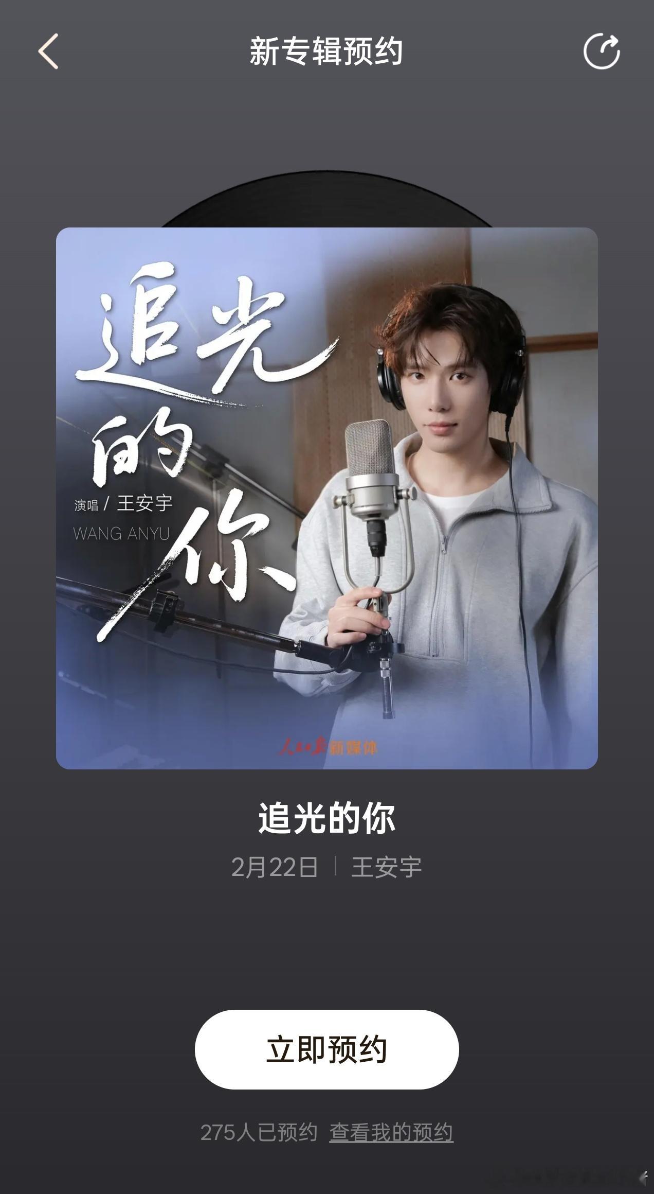 王安宇新歌追光的你开启预约,与人民日报合作的新专