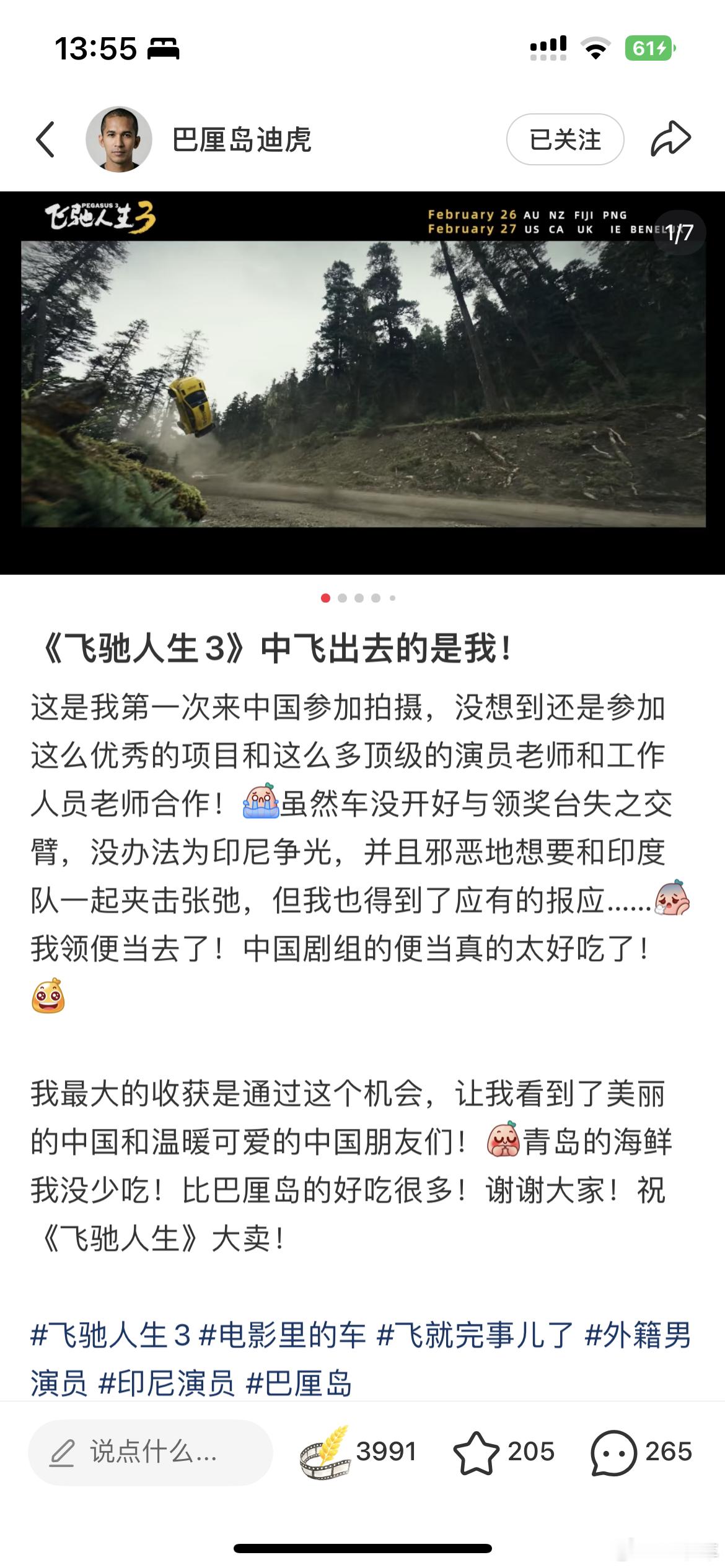 飞驰人生3五天破20亿哈哈刷到印尼演员亲自“认领”了叶经理高喊“跟我玩脏”这个镜头,还自嘲说:“虽然车没开好与领奖台失之交臂,没办法为印尼争光,但我得到了应有的报应……我领便当去了!” 🍱